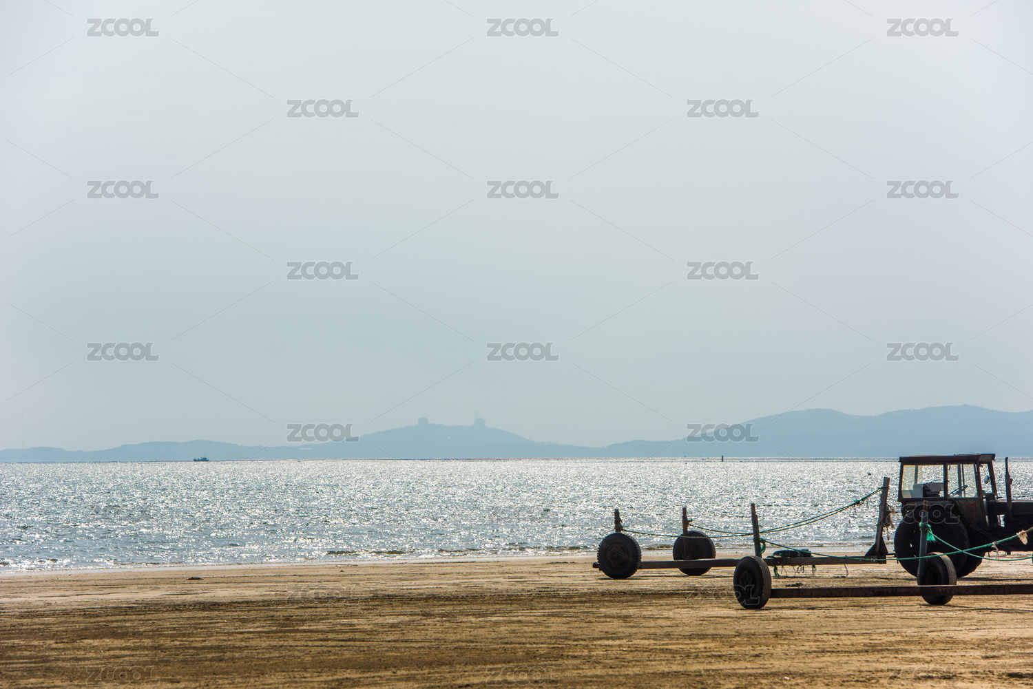 大海,海岸,渔民,拖船,拖拉机,渔船,沙滩,海水,工具,停放