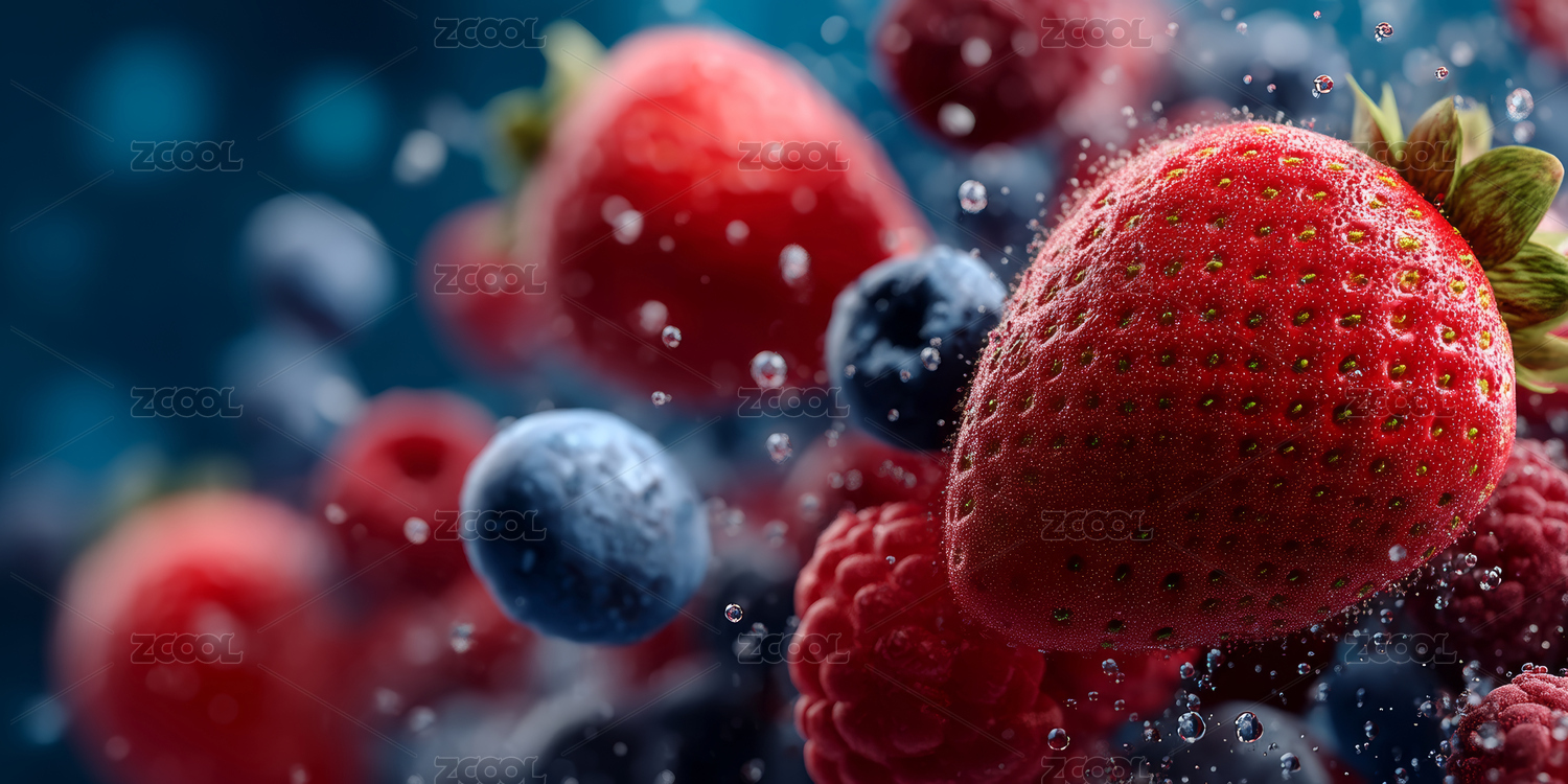 草莓和蓝莓浸泡在甜蜜的果酱中