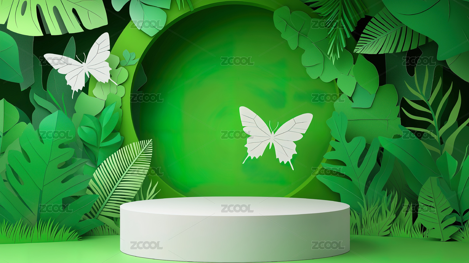 绿色,清新,展台,展架,陈列,叶子,树叶,背景,壁纸,台阶