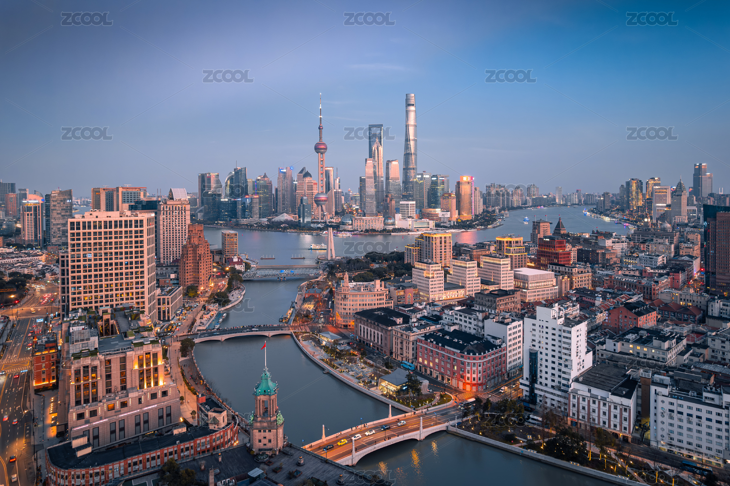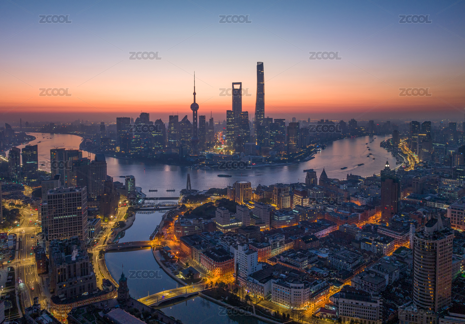 外滩全景,陆家嘴,浦东,浦西,金光,黄浦江,白玉兰广场,北外滩,外滩,上海城市风光