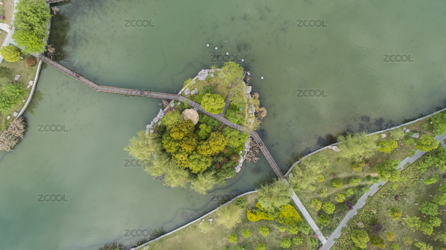 武汉琴台月湖公园航拍风光