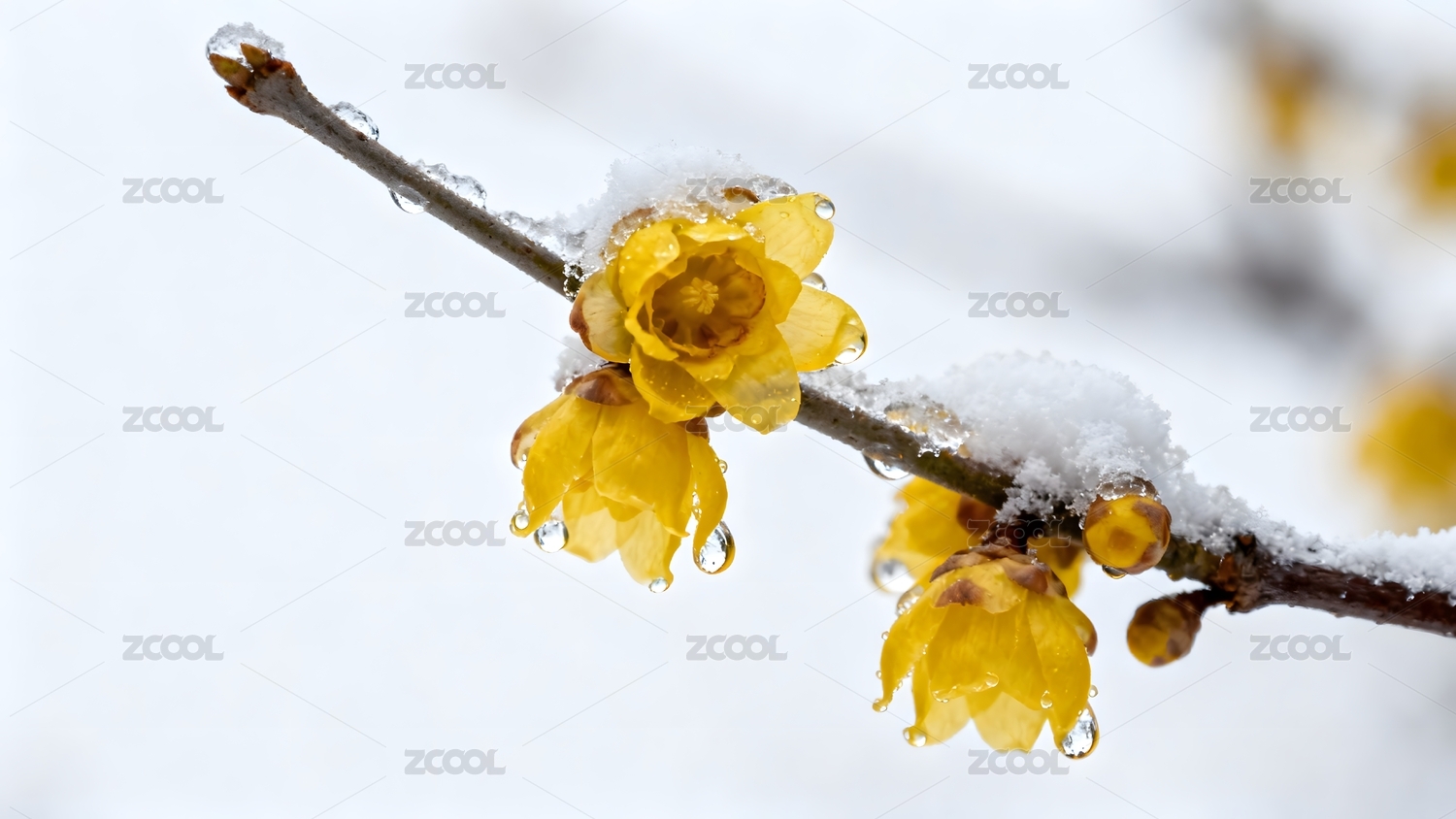 黄色梅花雪景