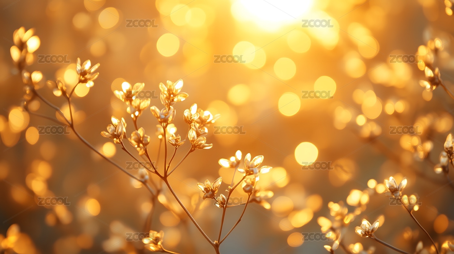 阳光下植物枝条与梦幻光斑交织的美丽景象