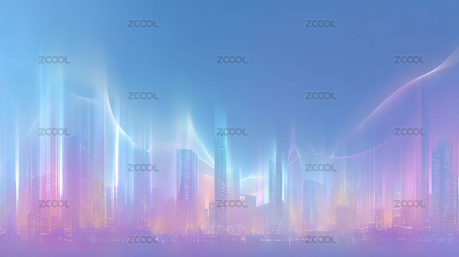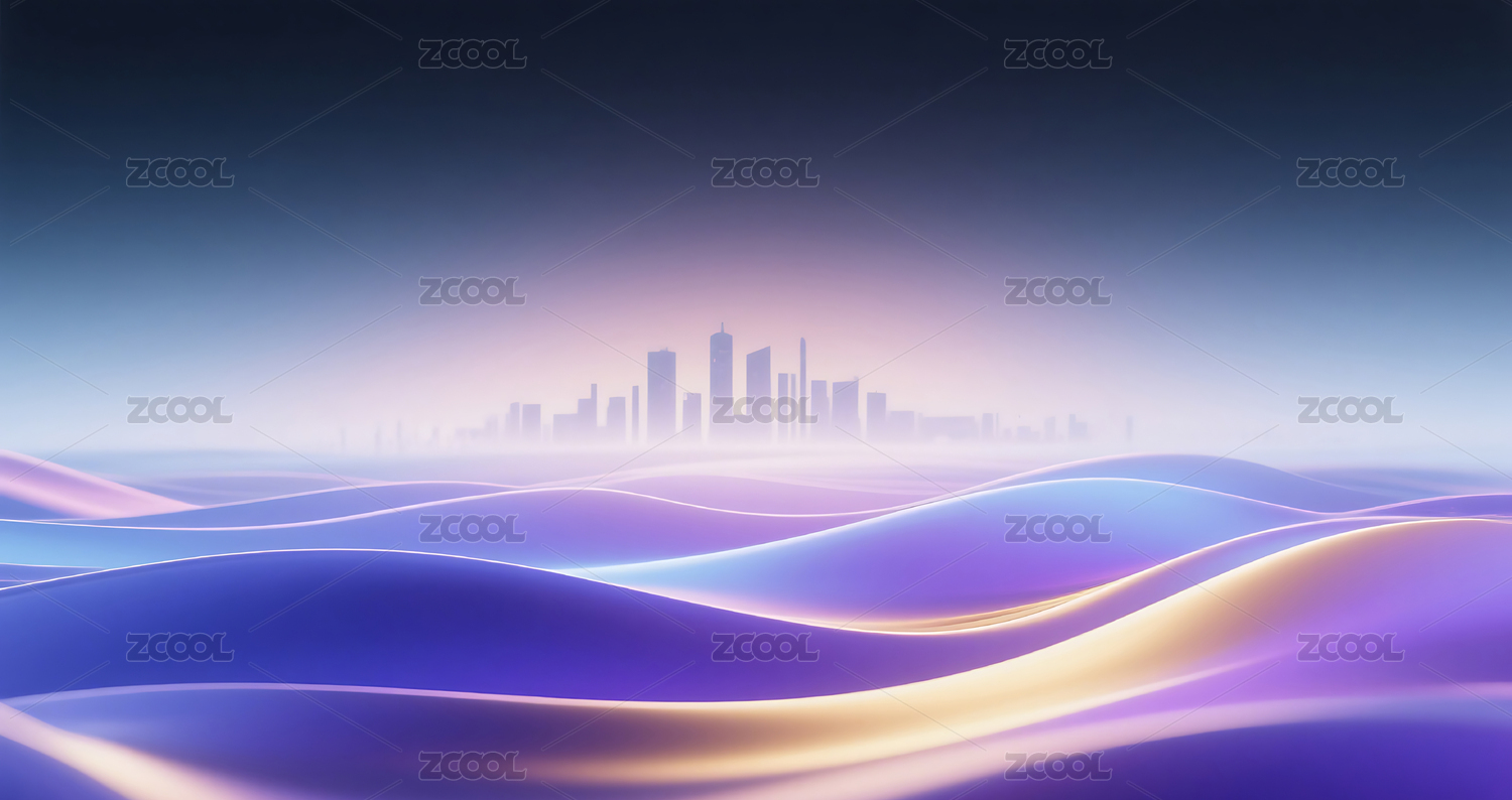抽象城市天际线与波浪线条商务背景