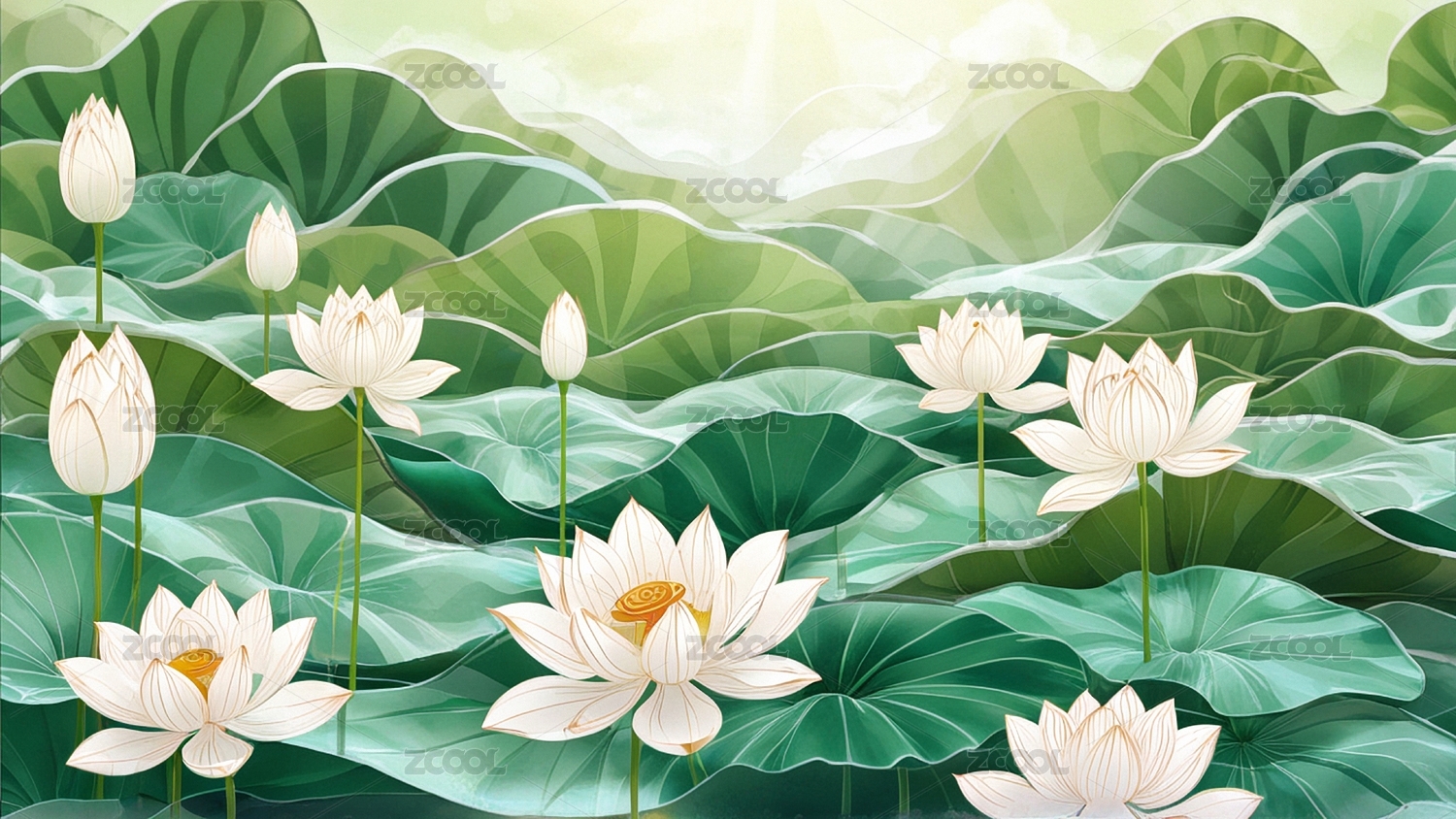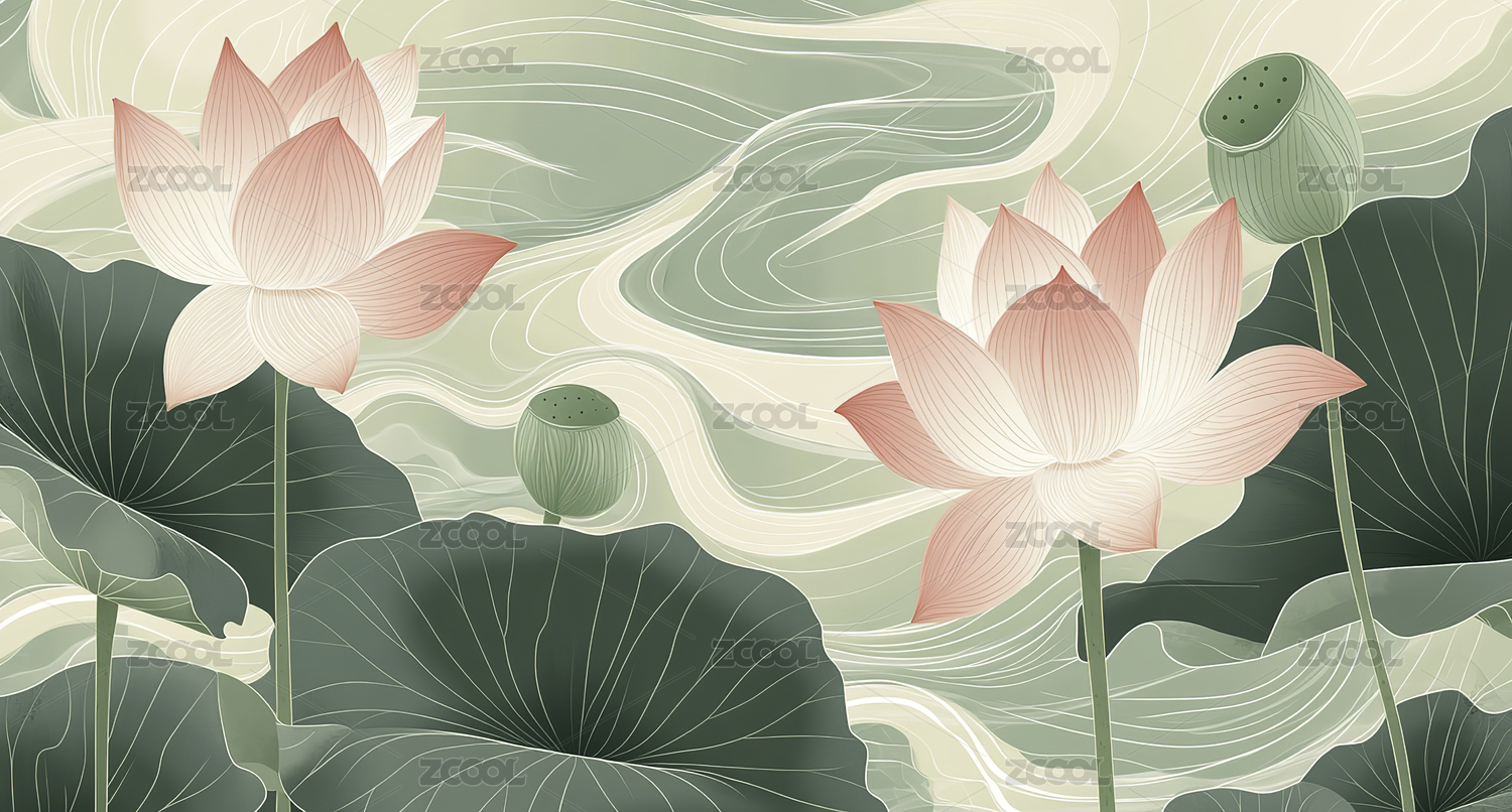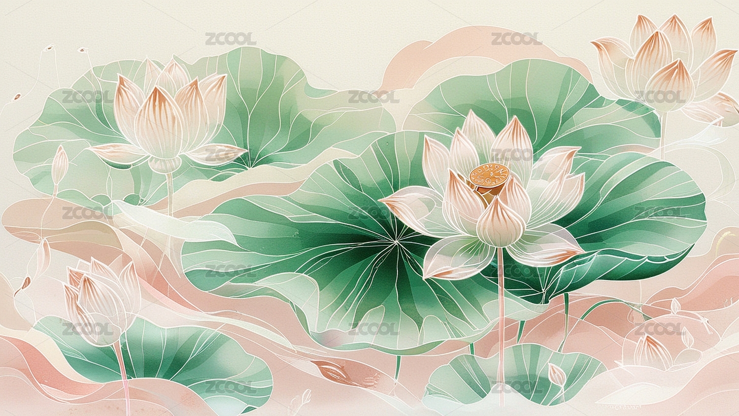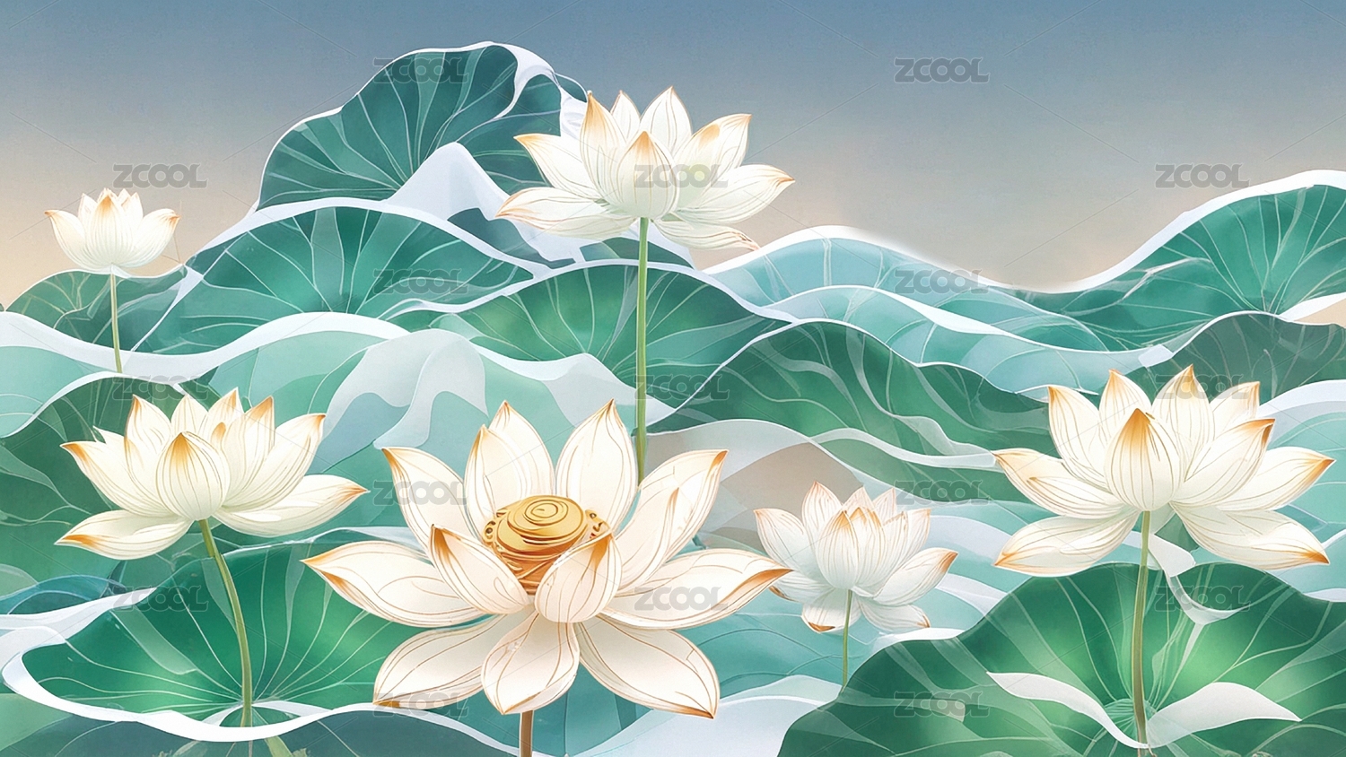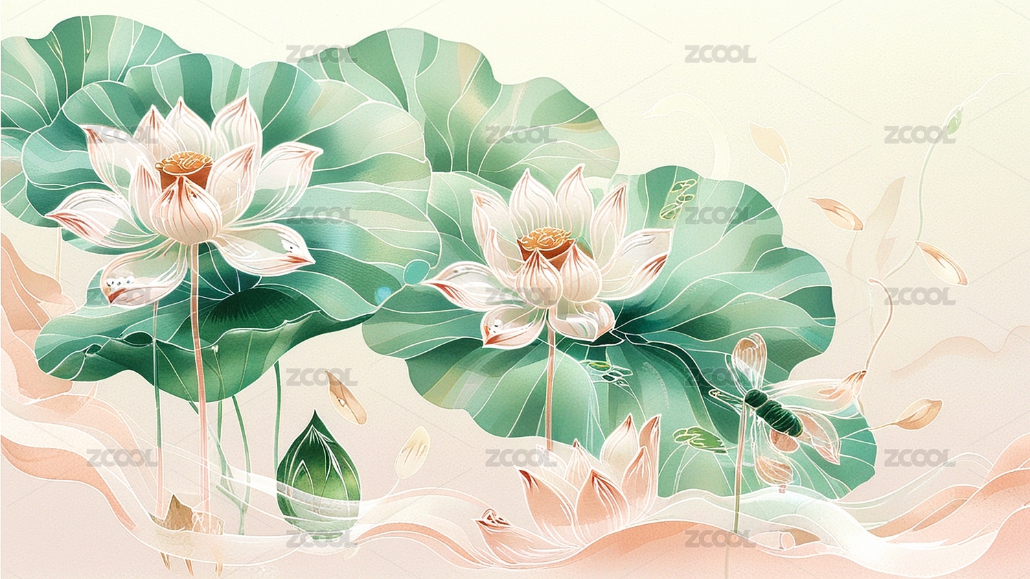 荷花,中国风,插画,写意,国潮荷花,背景,艺术,插图,国潮插画,古风