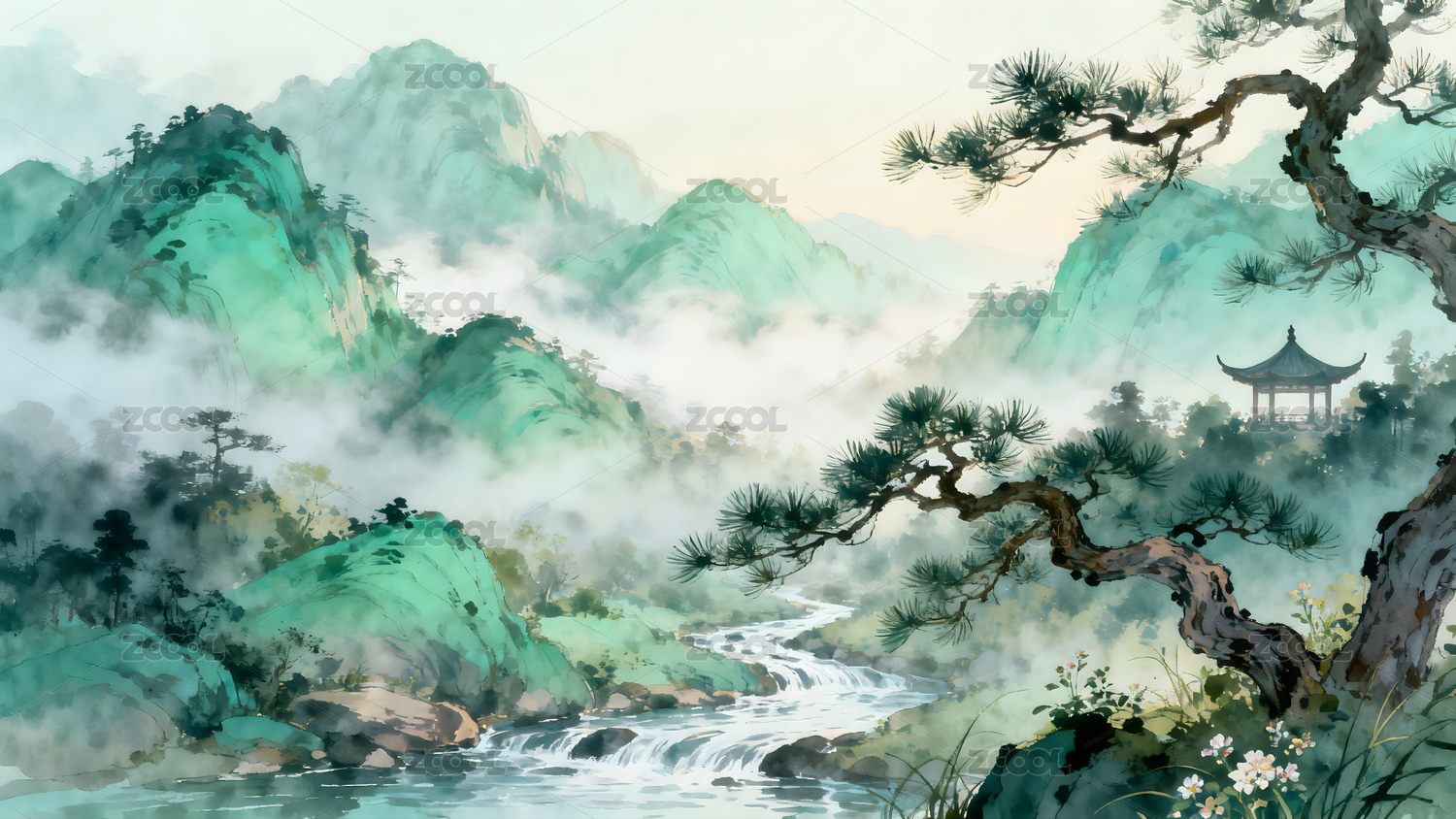 背景,艺术,插画,中国风,古风,AIGCFG,写意,山水画,插图,山水