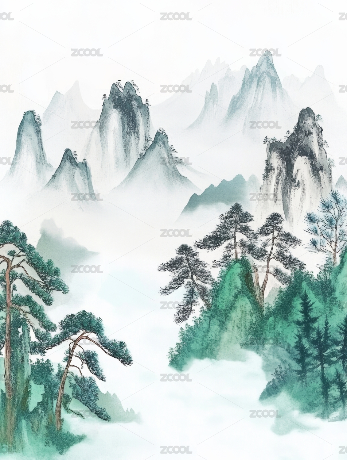 中国传统山水画风格艺术插画背景