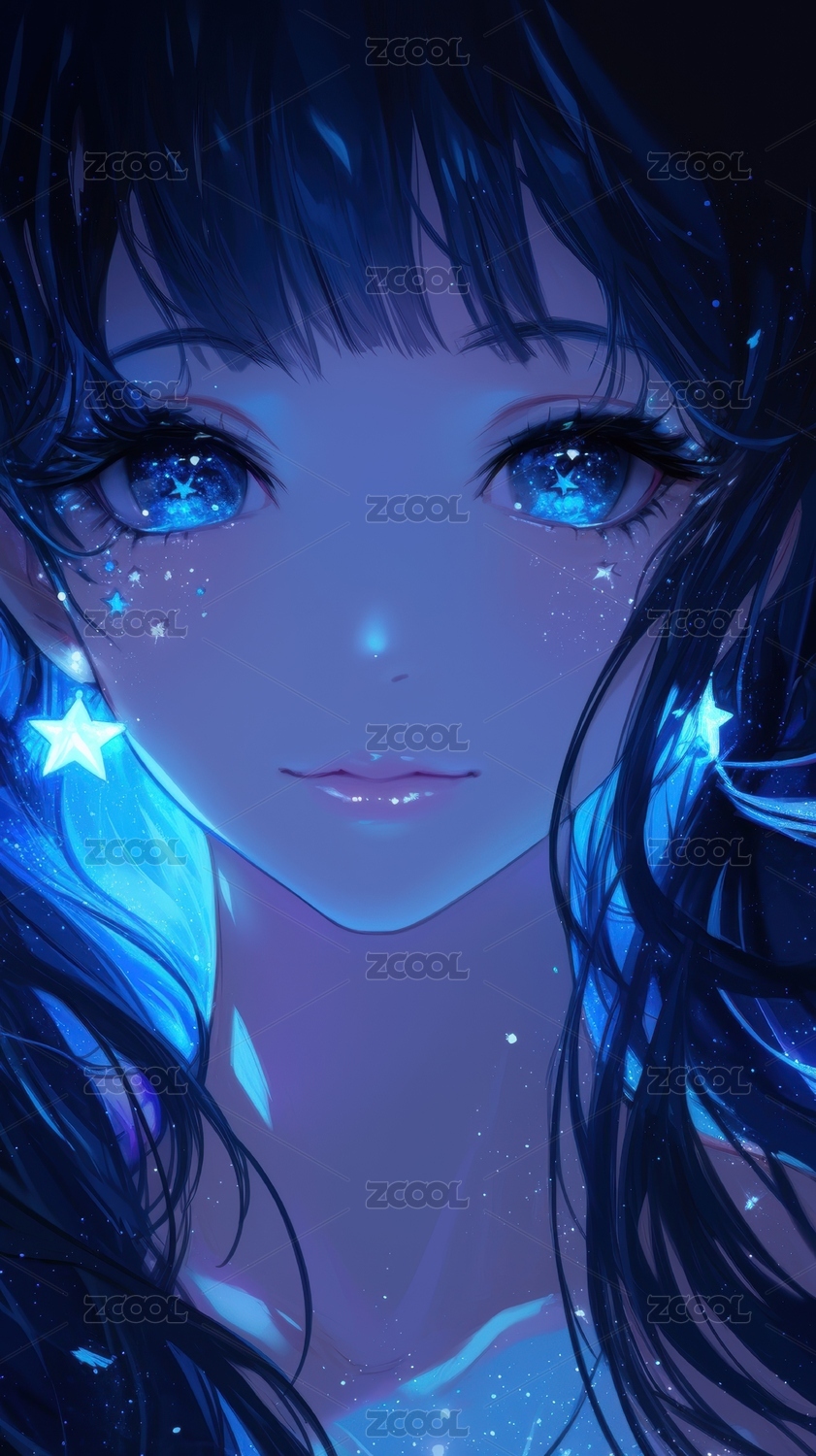 蓝光闪烁的动漫少女