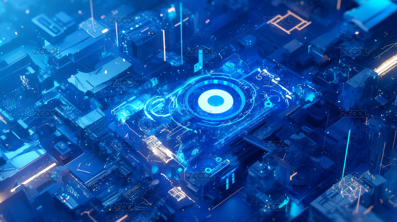 科技感电路板,蓝色光晕闪耀,构建数字世界
