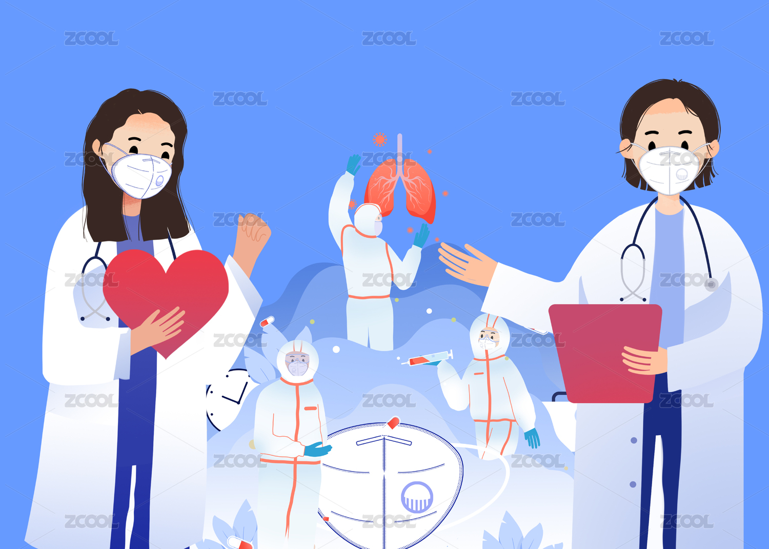 医生守护团队插画