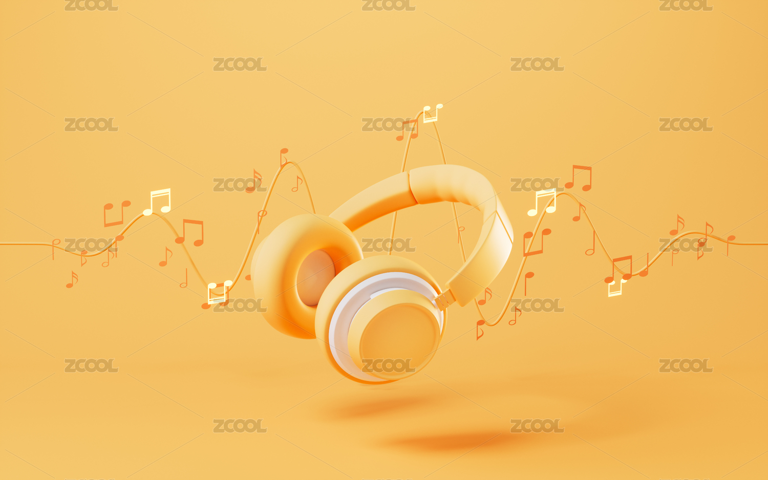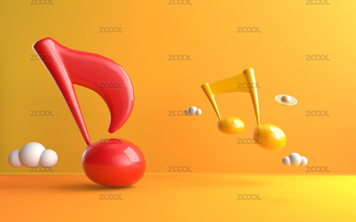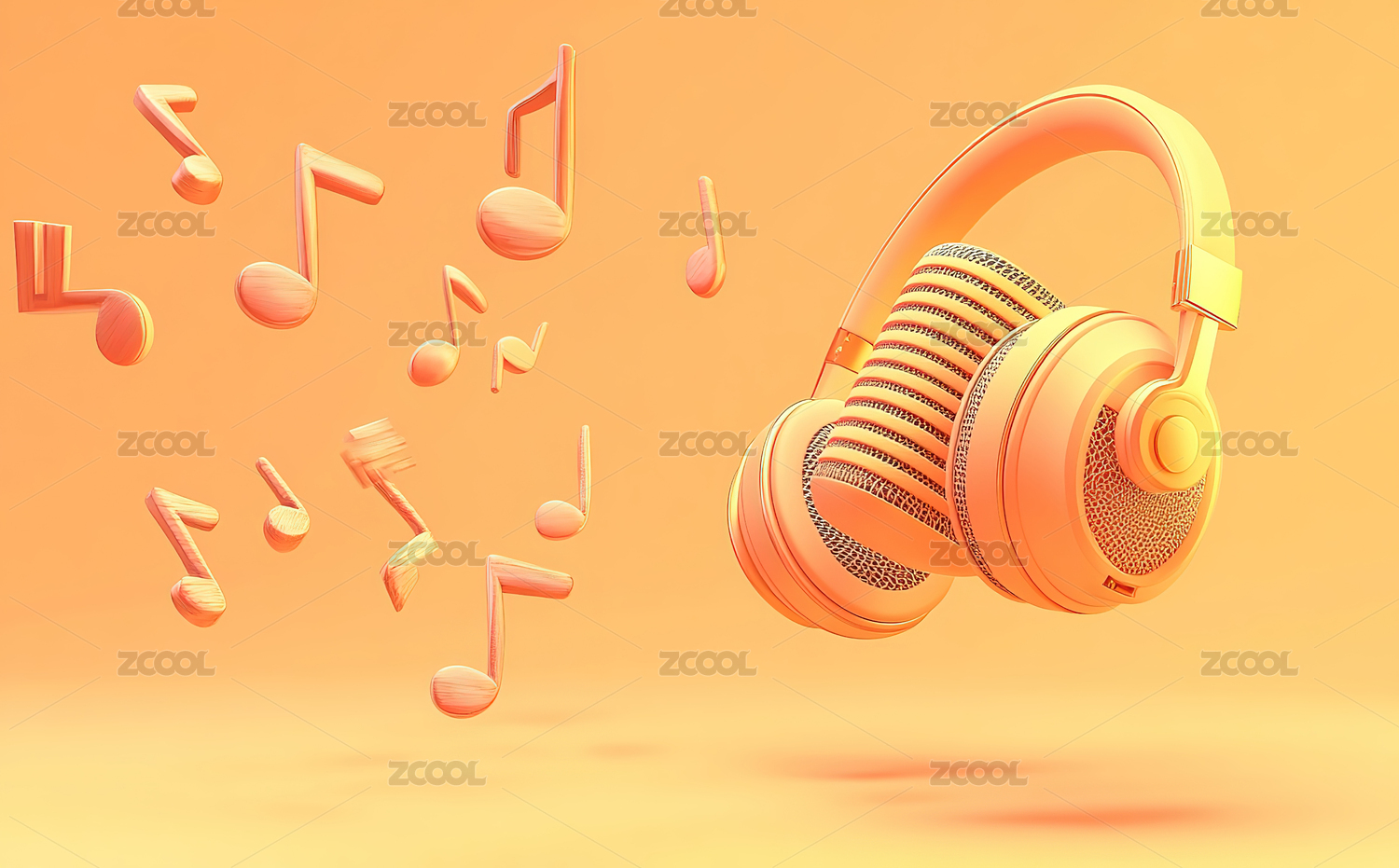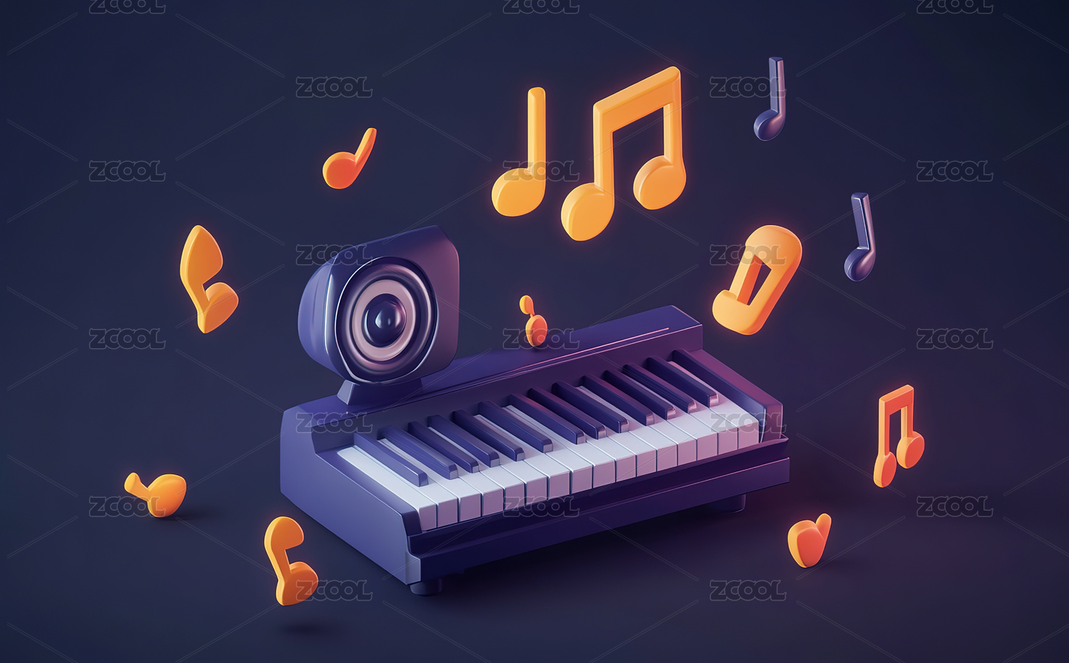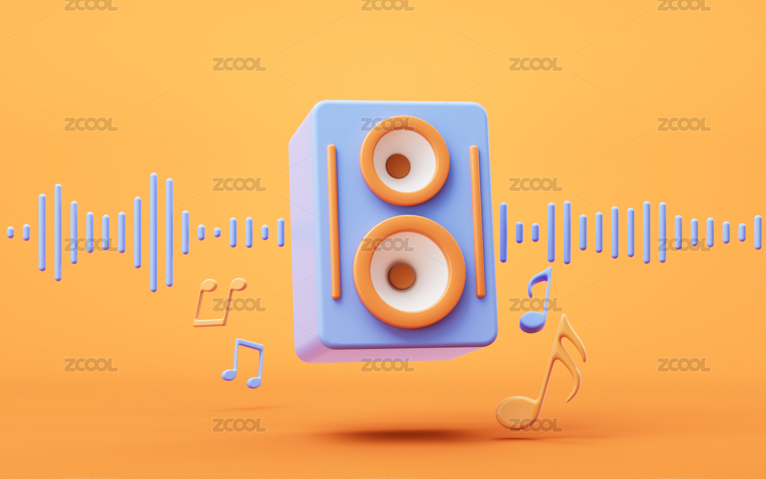 橙色立方体音箱与音符环绕