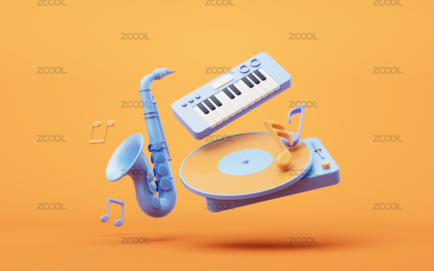 播放器图标与乐器3D渲染