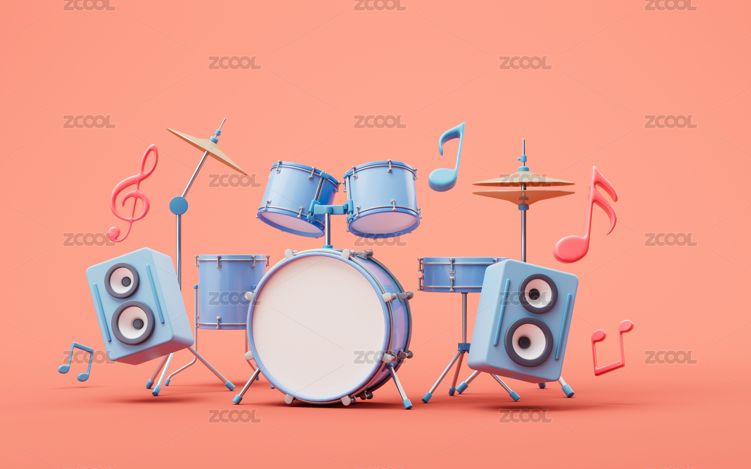 卡通风格架子鼓乐器3D渲染