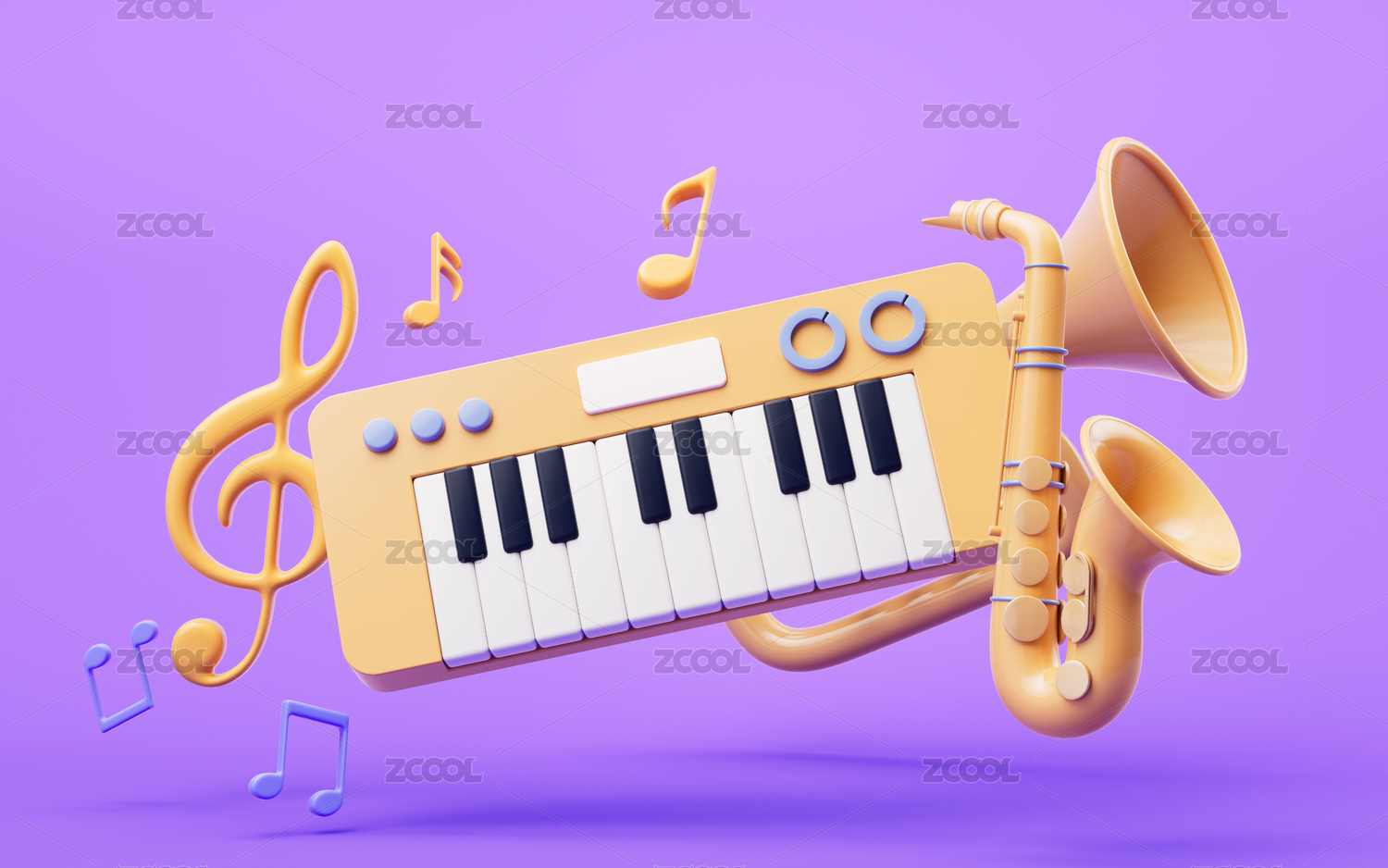 卡通风格演奏的乐器3D渲染