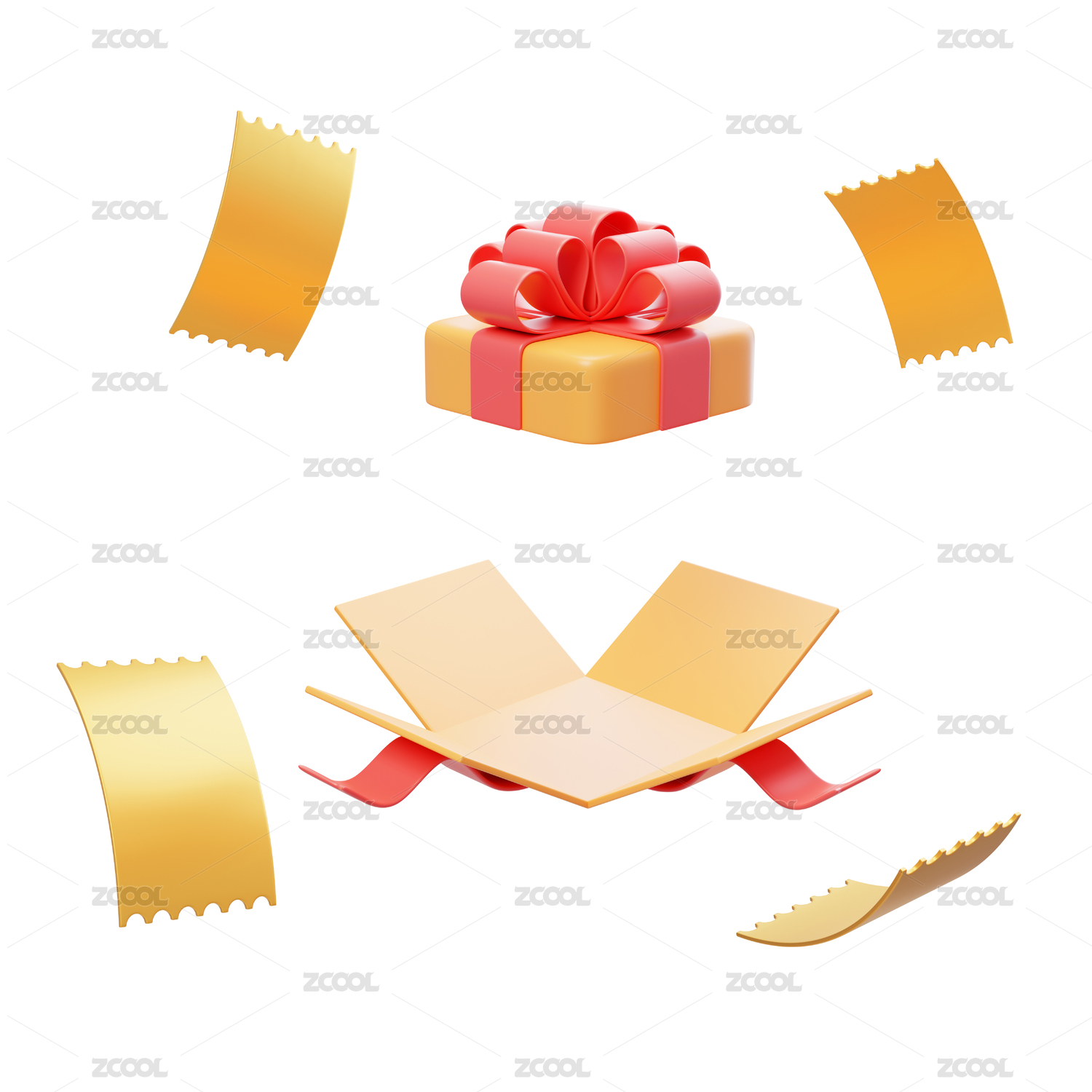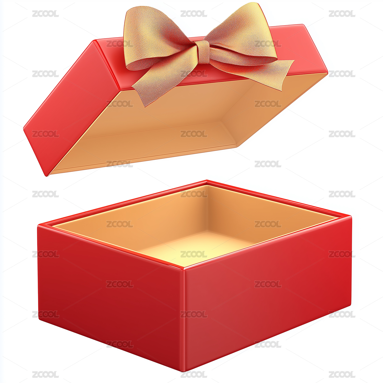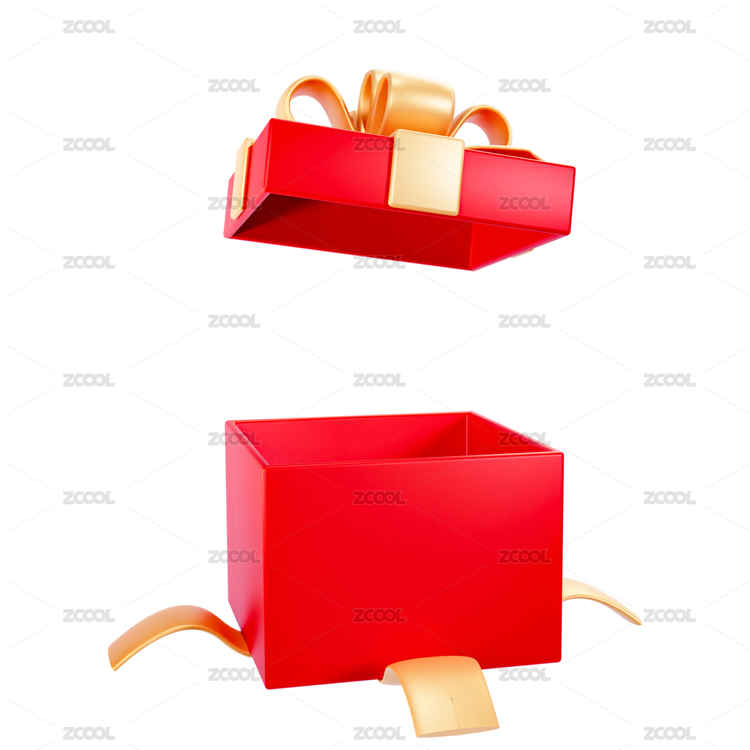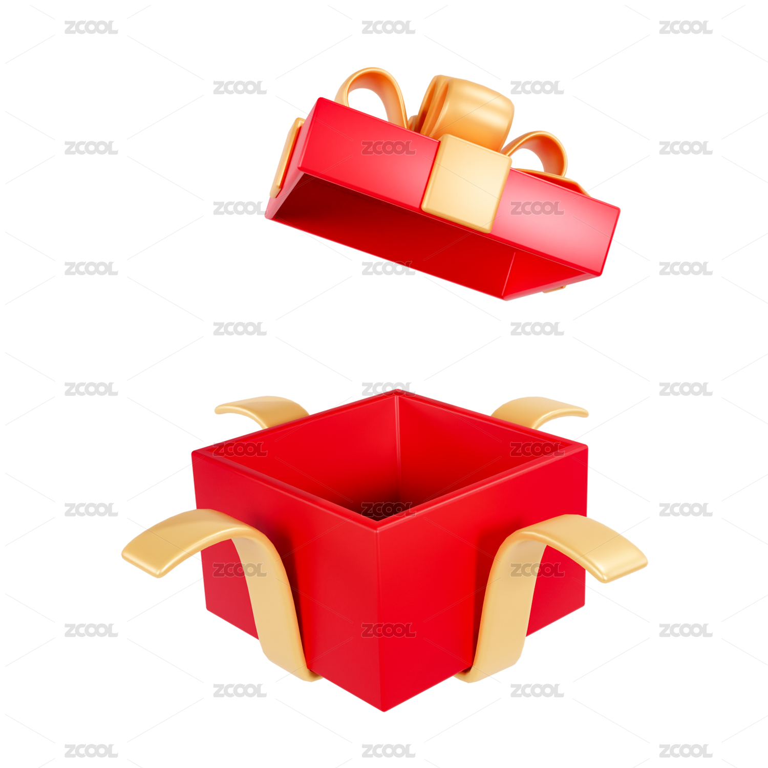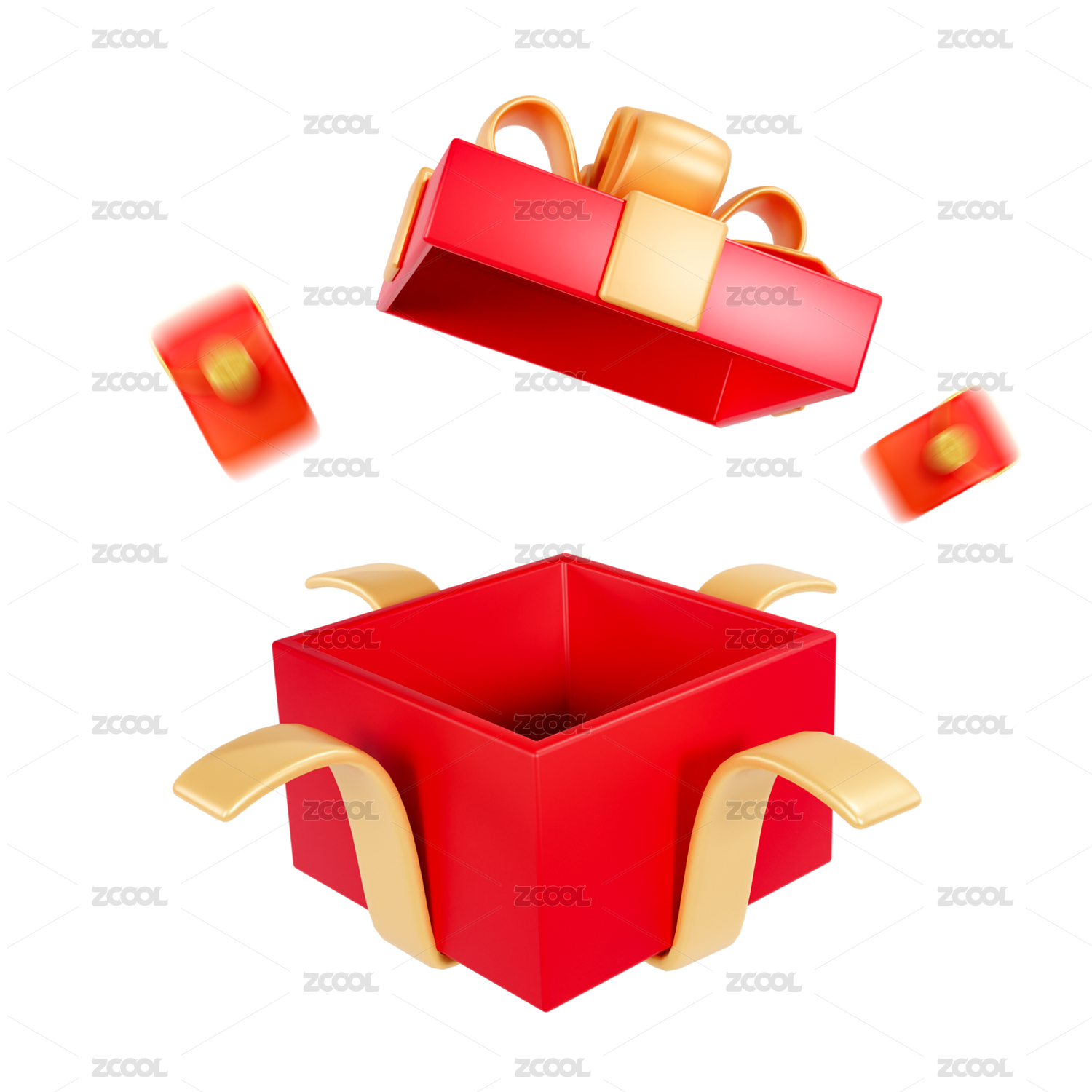 3D渲染的打开的红色礼盒礼物电商购物元素