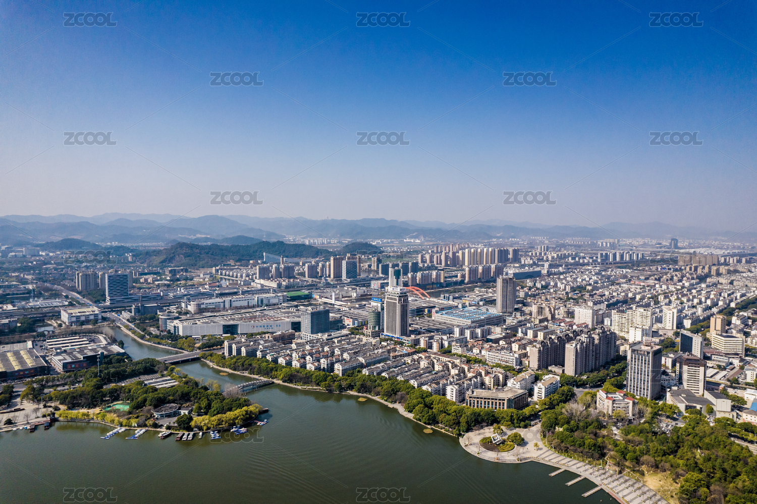绍兴市柯桥区城市风光航拍,瓜渚湖湖滨公园