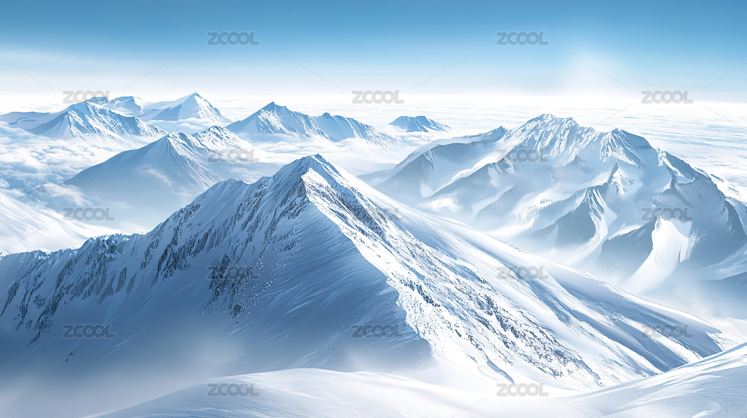 白雪皑皑的群山在晴朗的天空中俯瞰