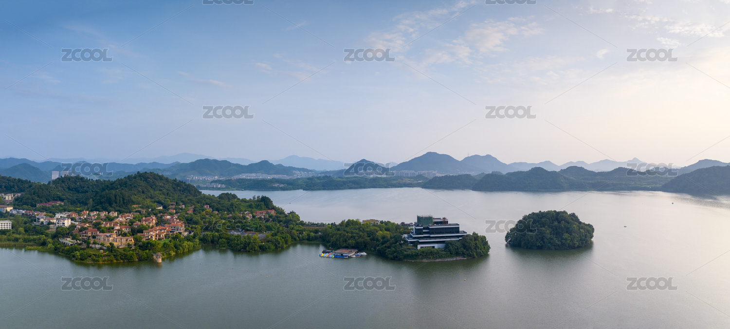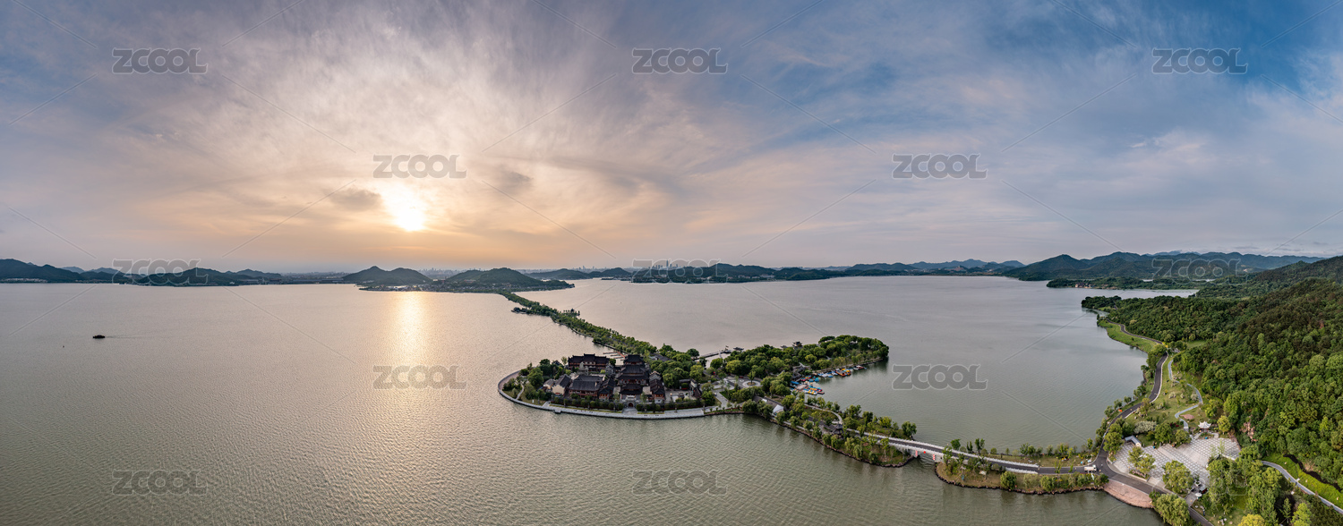 中国浙江省宁波市东钱湖小普陀景区航拍图