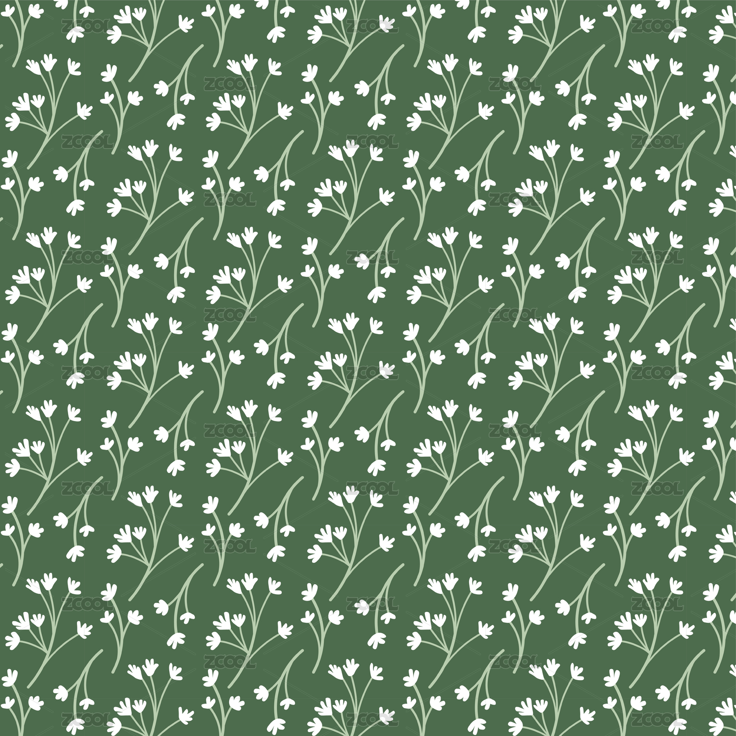 绿底白色小野花图案