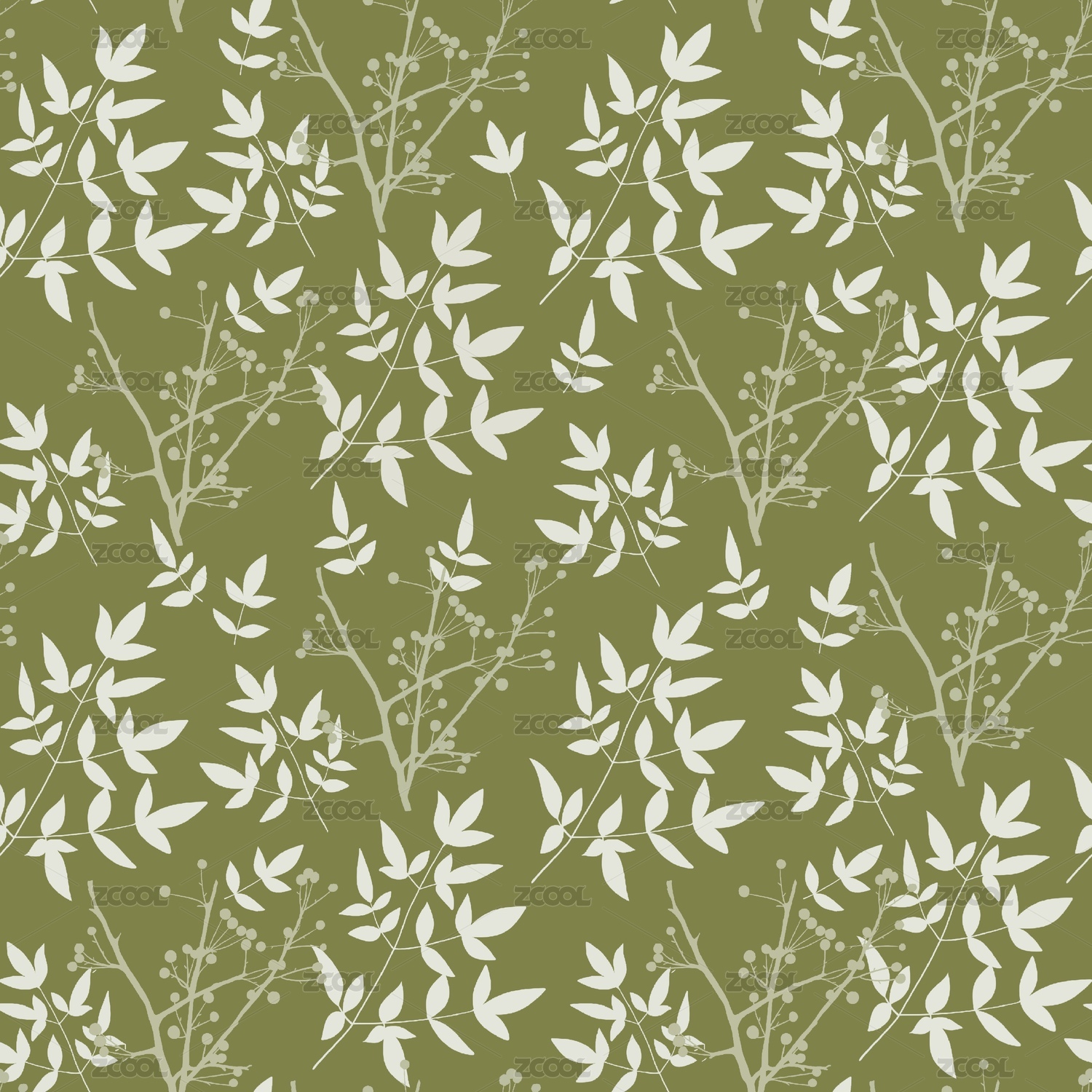 绿底植物枝条纹理图案设计
