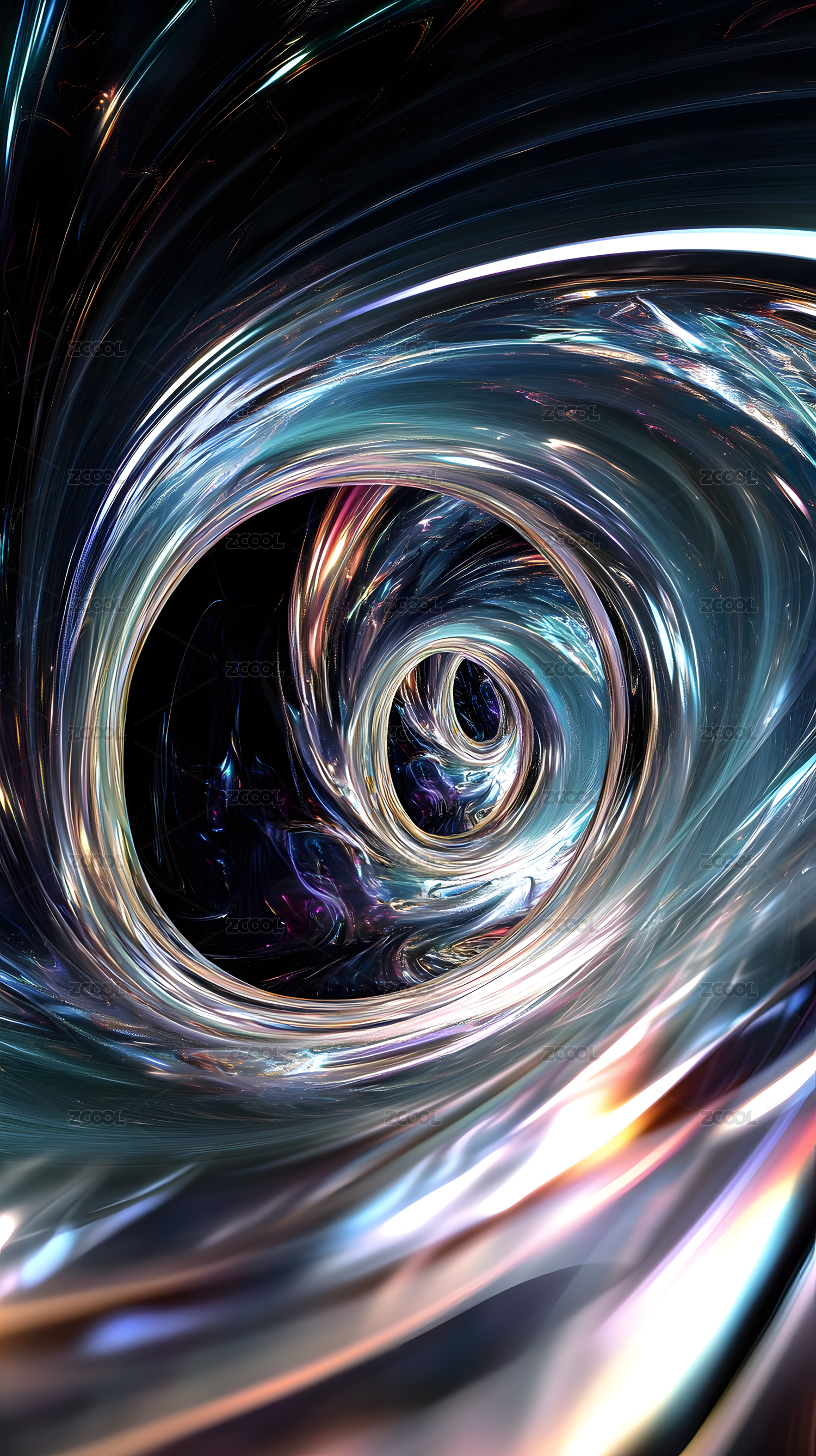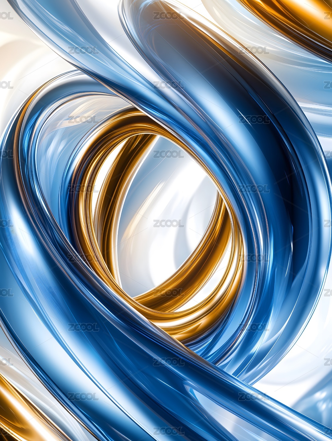 蓝色和金色光滑曲线交织,形成抽象漩涡图案