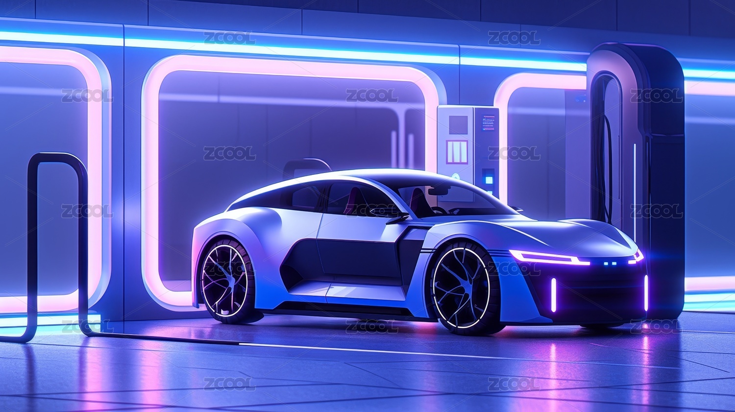 环保新能源电动汽车充电三维场景