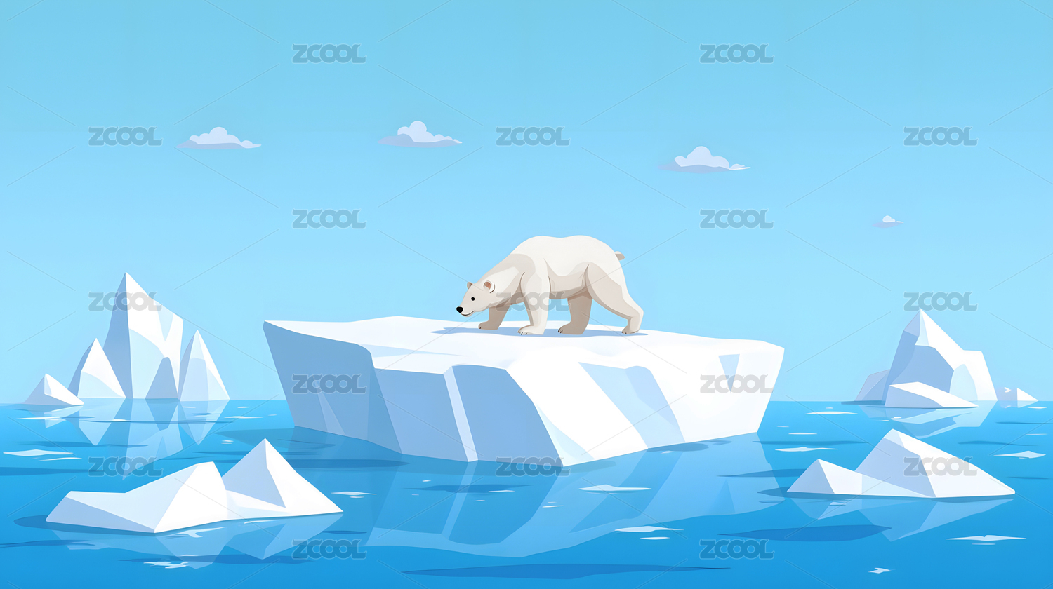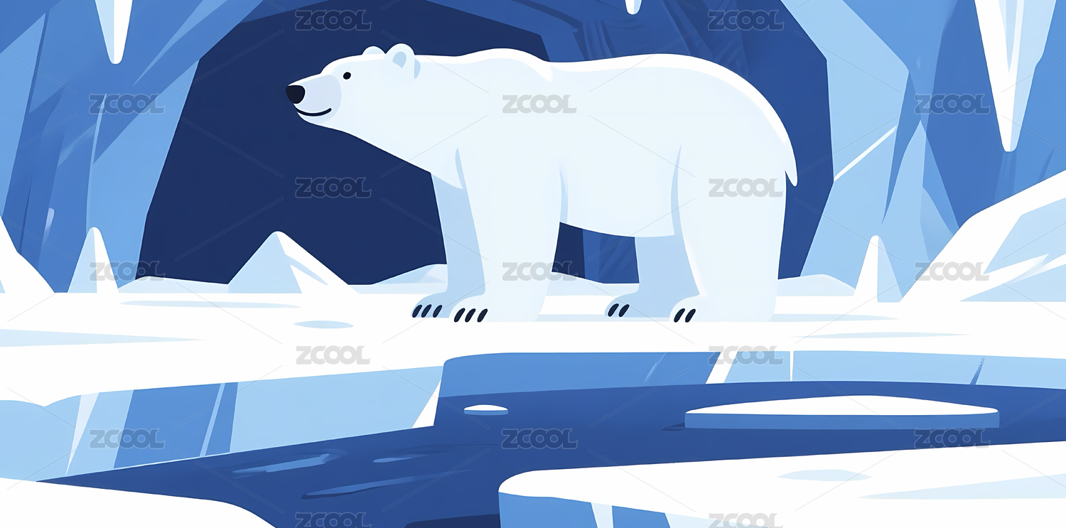 冰川,北极熊,风景,自然,熊,横构图,下雪,冬季,插画,卡通