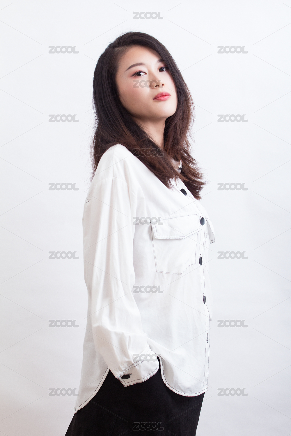 白色衬衫的长发亚洲女生