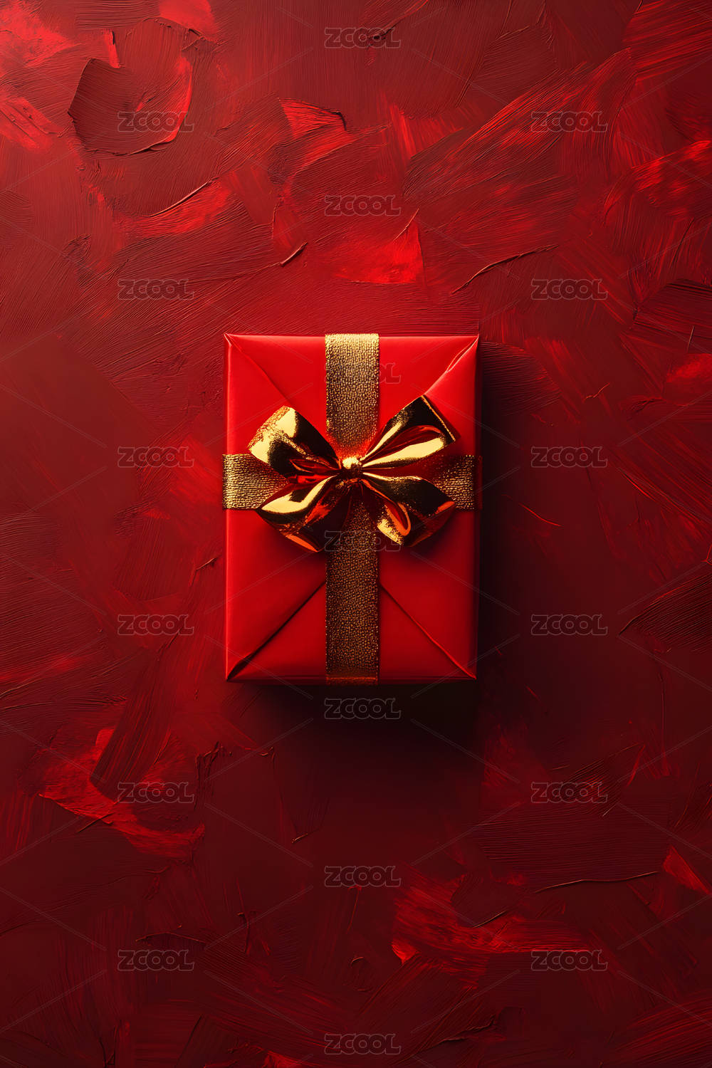 金色蝴蝶结装饰的红色礼盒