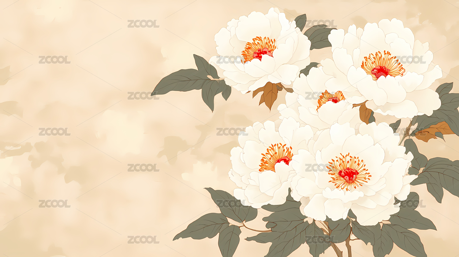 白色,牡丹花,植物,插画,国风,背景,艺术,盛开,壁纸,富贵