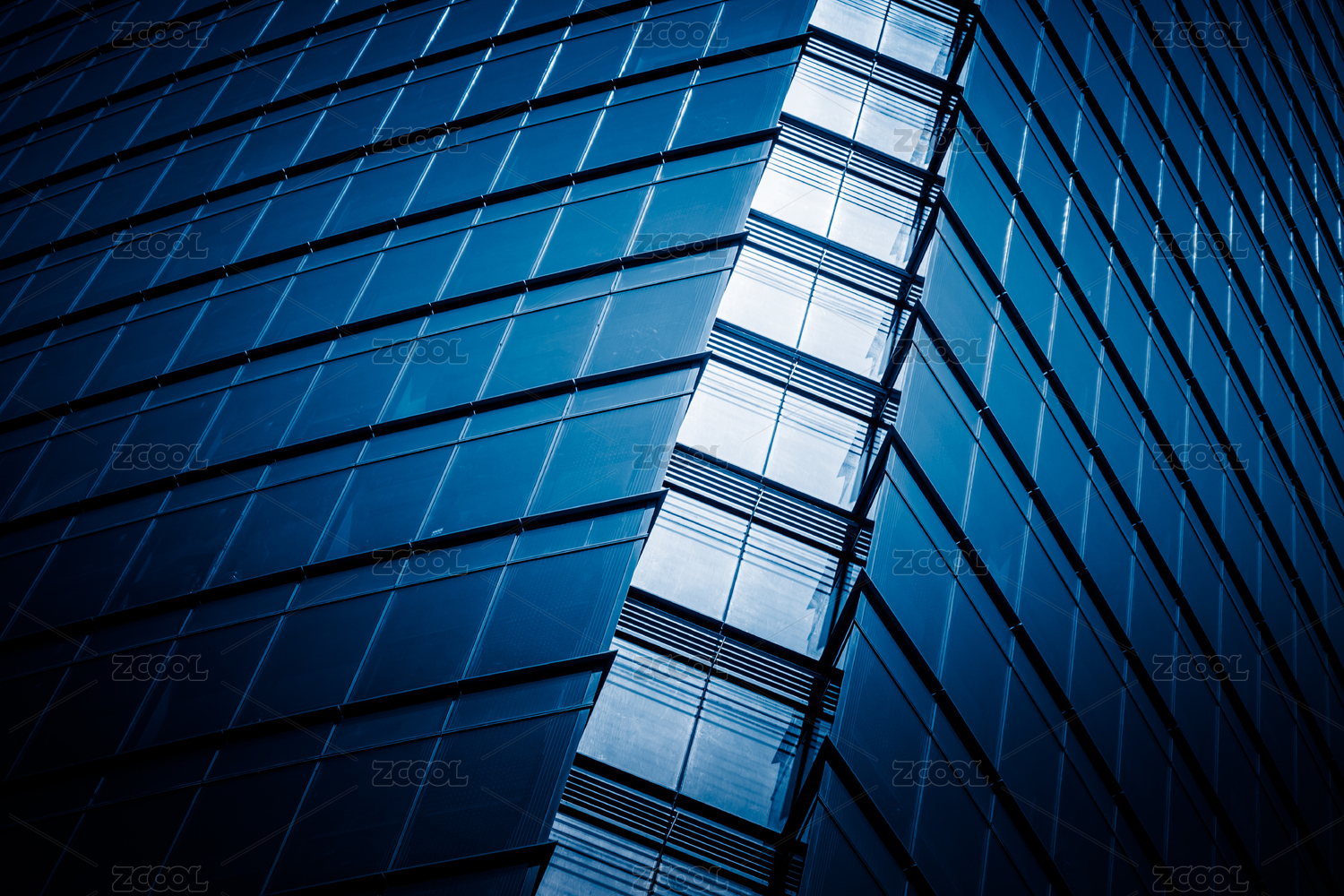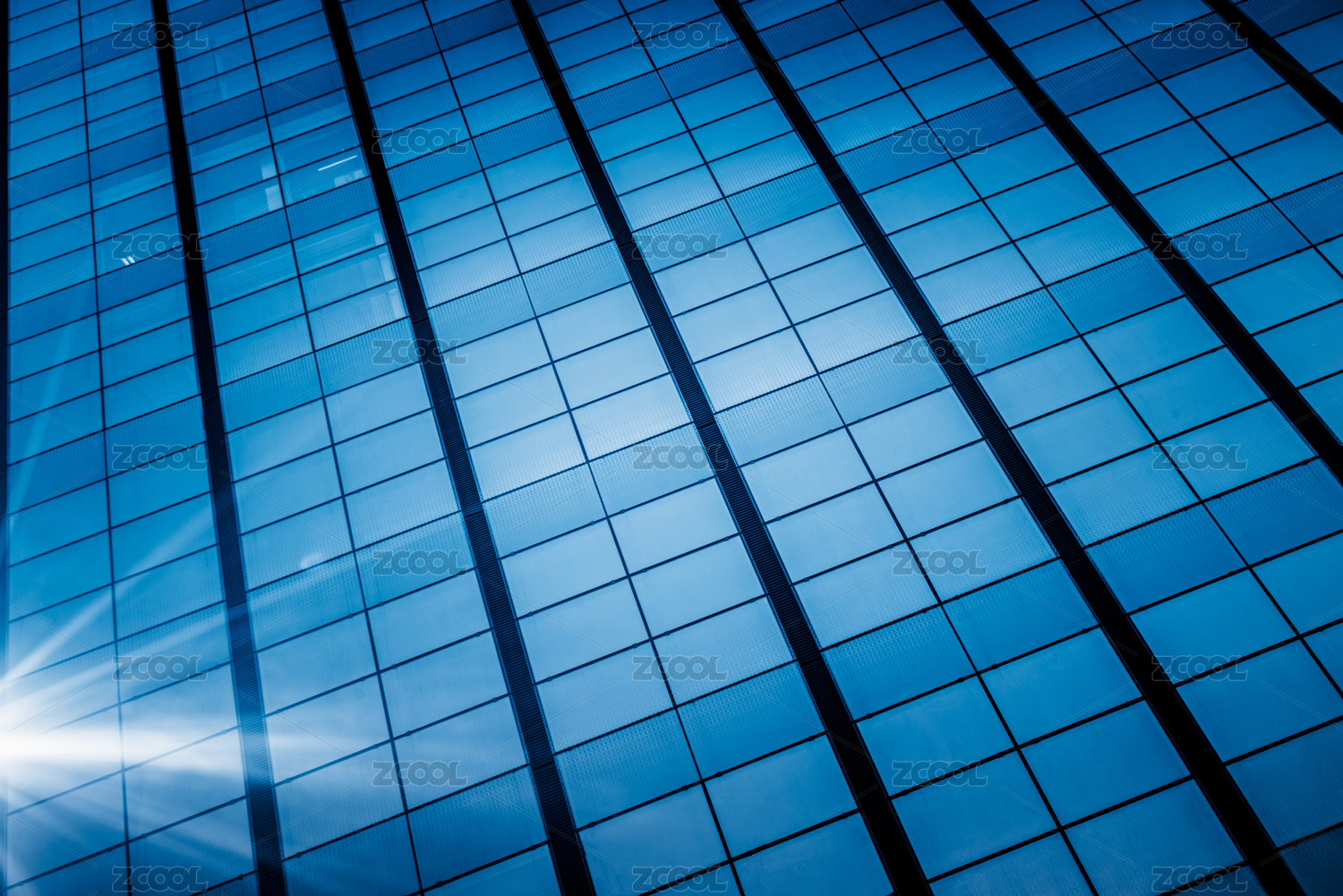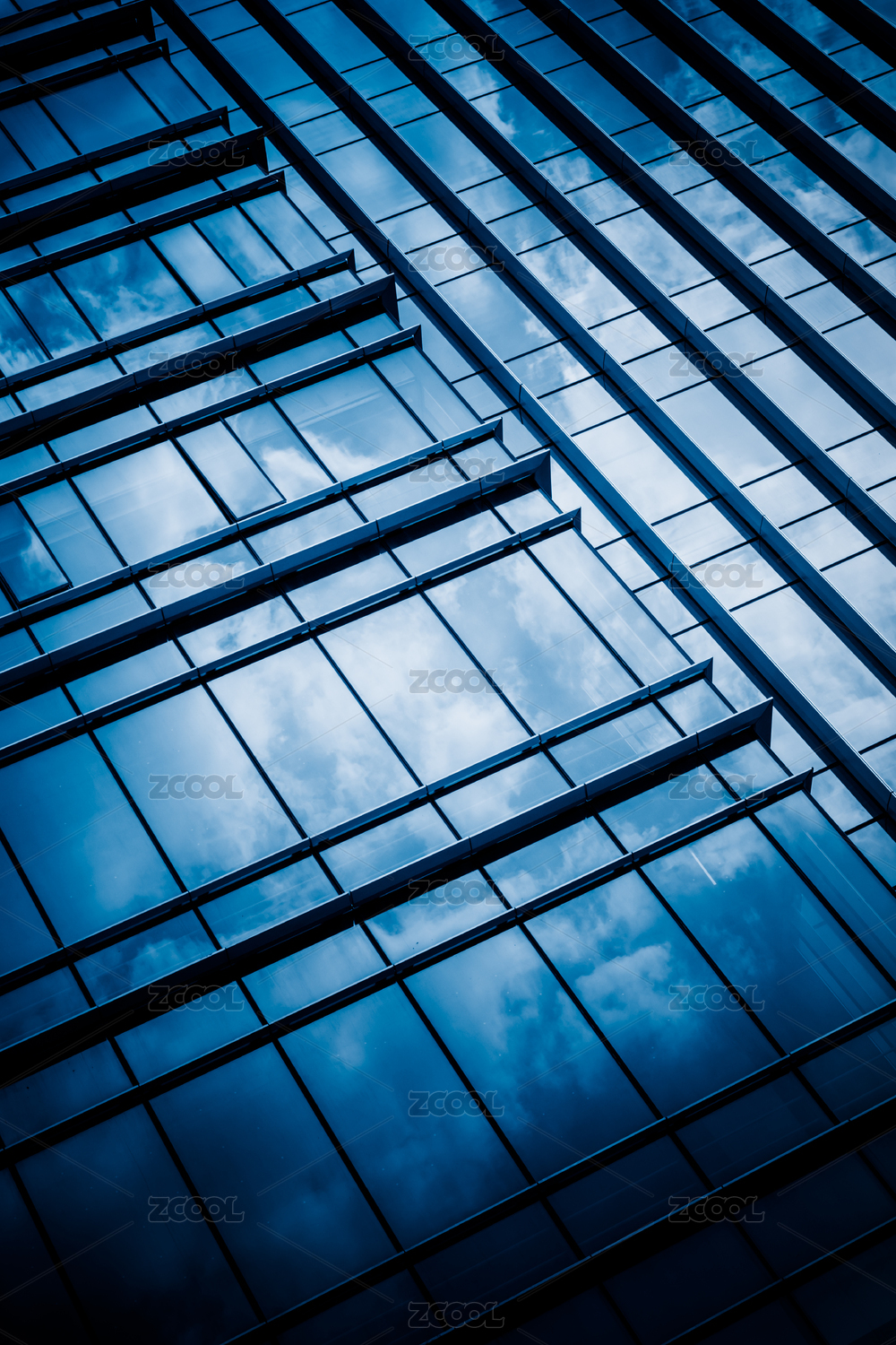 抽象的建筑摩天大楼的蓝色玻璃墙