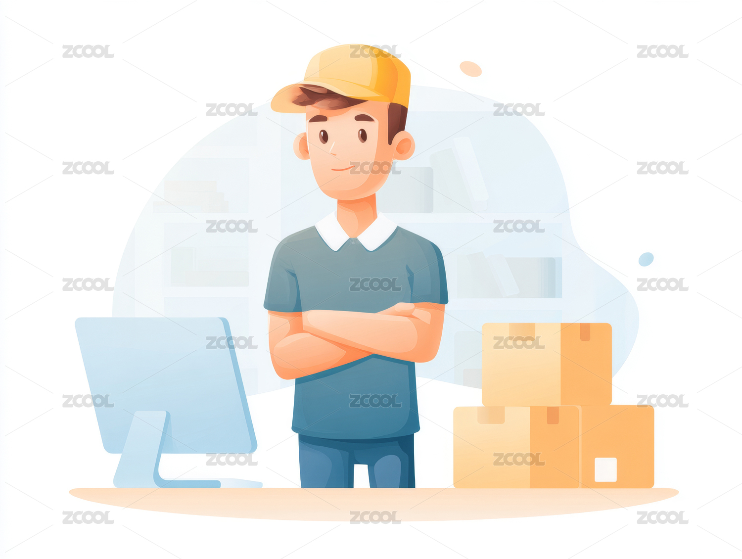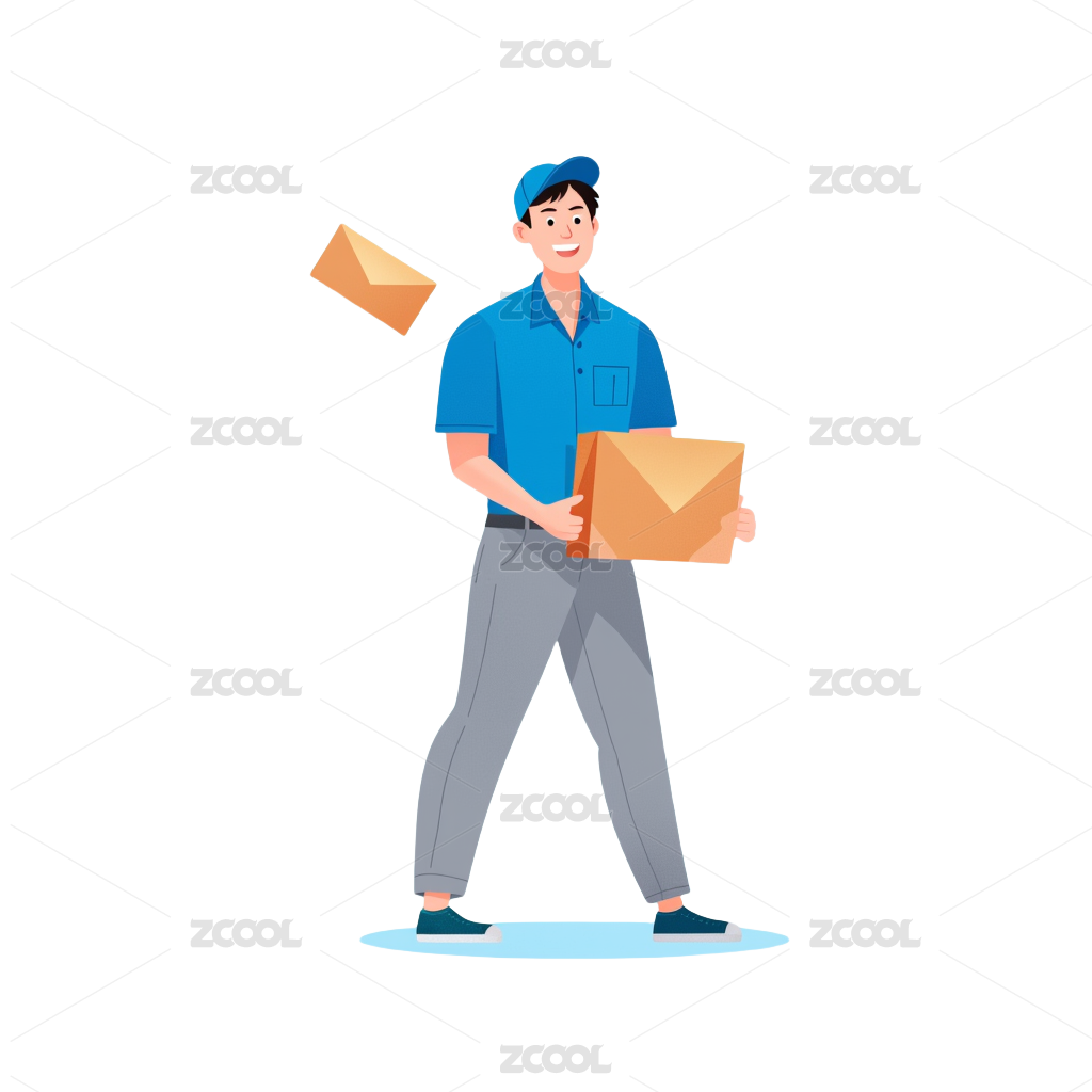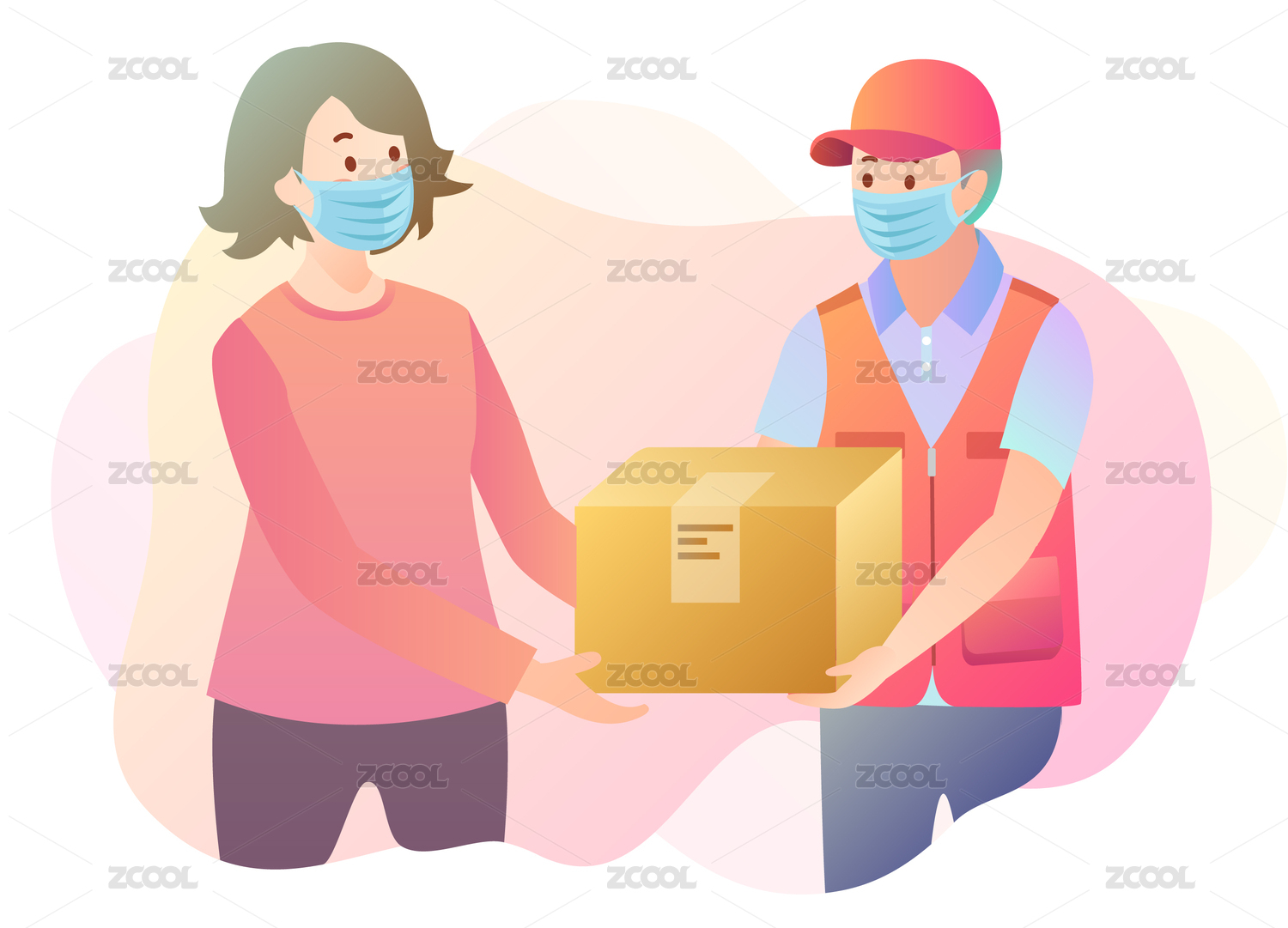 快递员送惊喜上门 恭喜中奖 扁平人物