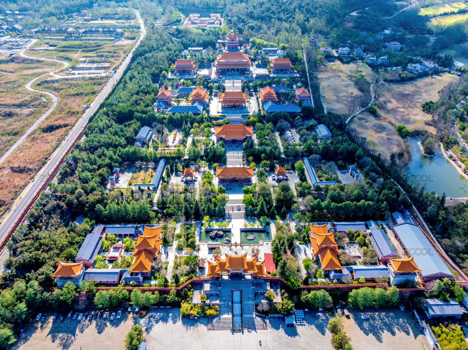 浙江绍兴会稽山兜率天景区龙华寺全景