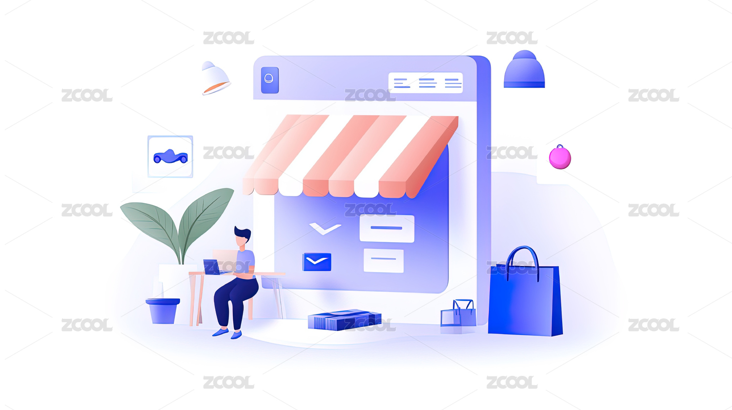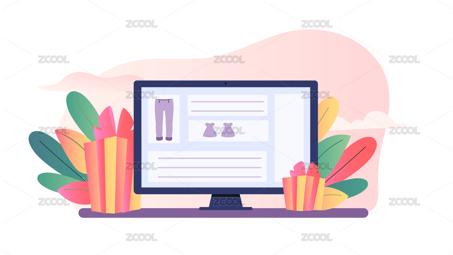扁平风购物场景