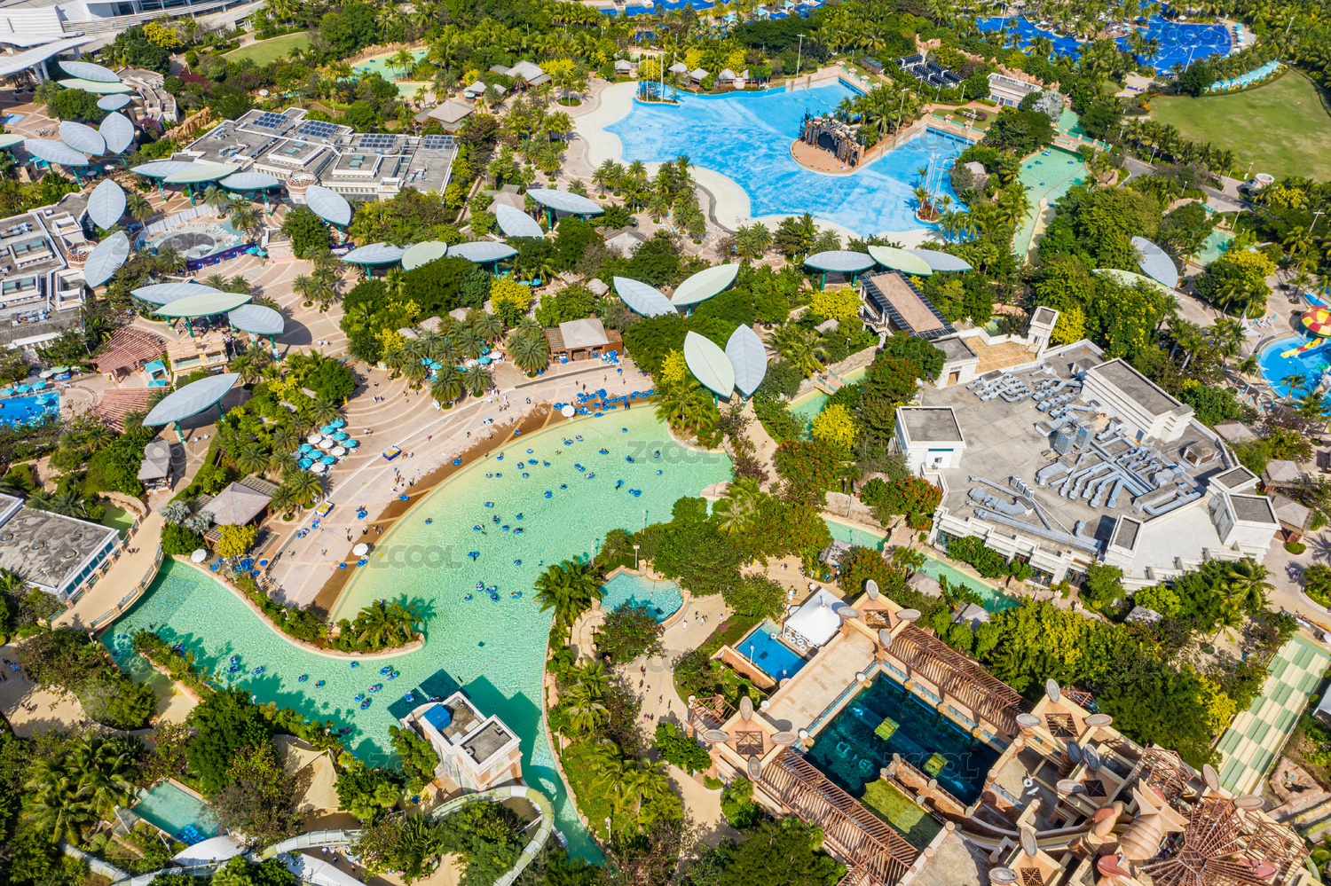 航拍海南三亚亚特兰蒂斯水世界海滨水上乐园