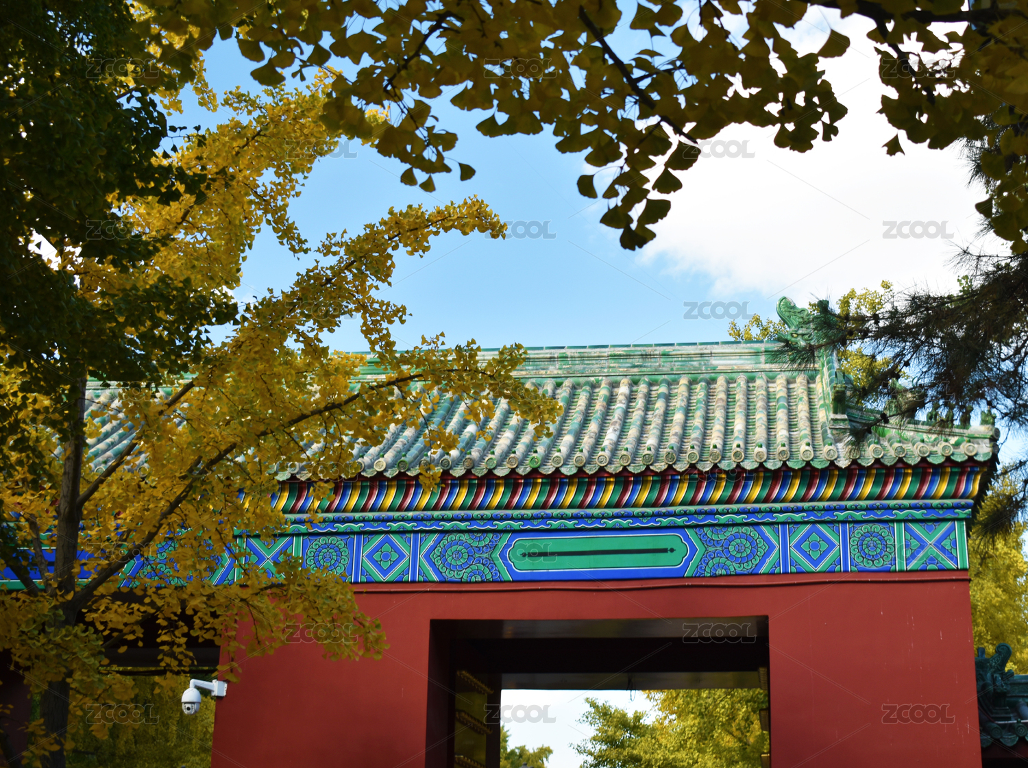 秋天,银杏树,秋色,银杏,古都秋韵,北京秋色,北京地坛公园,红墙,朱漆大门,宫门