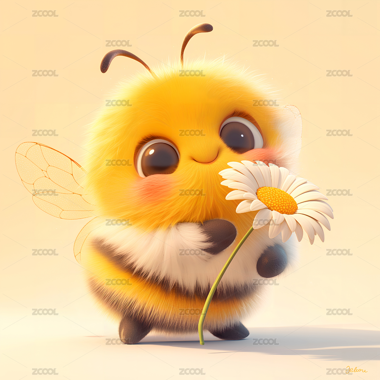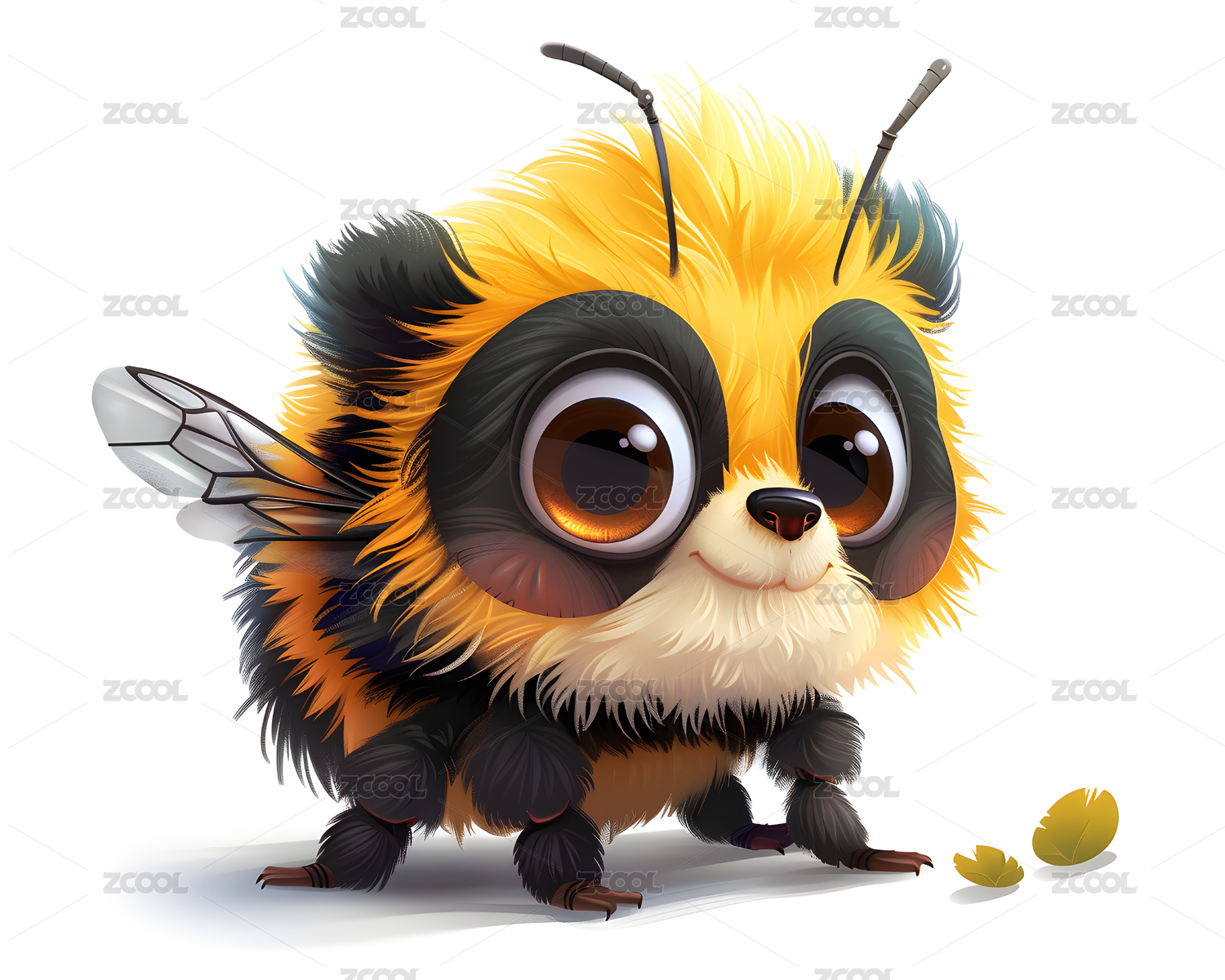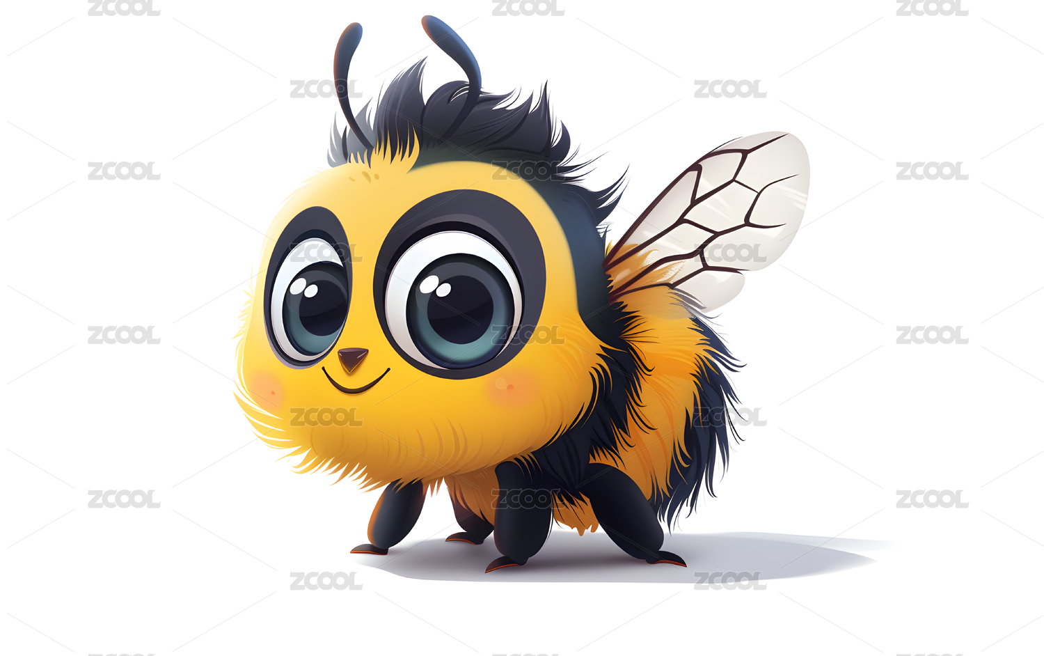 一只圆滚滚的卡通大眼睛蜜蜂头像插画