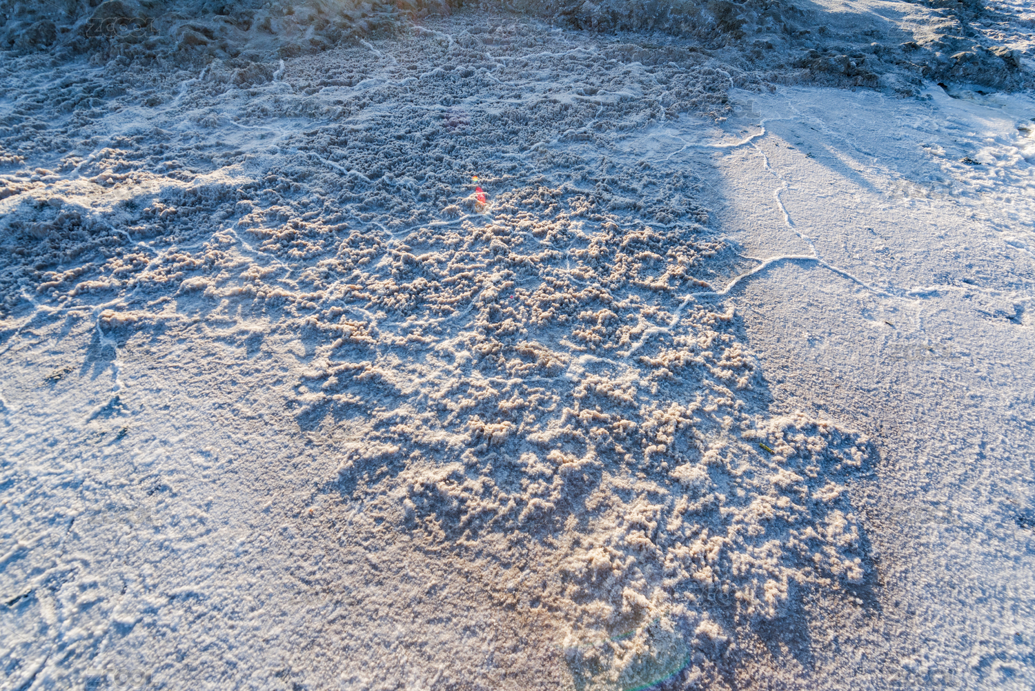 青海柴达木盆地 “翡翠湖”卤盐天然结晶层