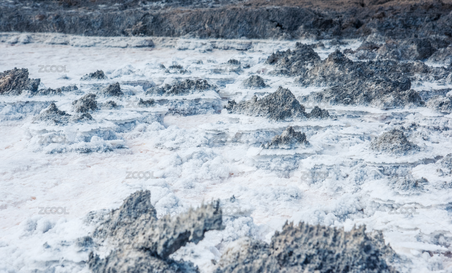 青海柴达木盆地 “翡翠湖”边的卤盐结晶层