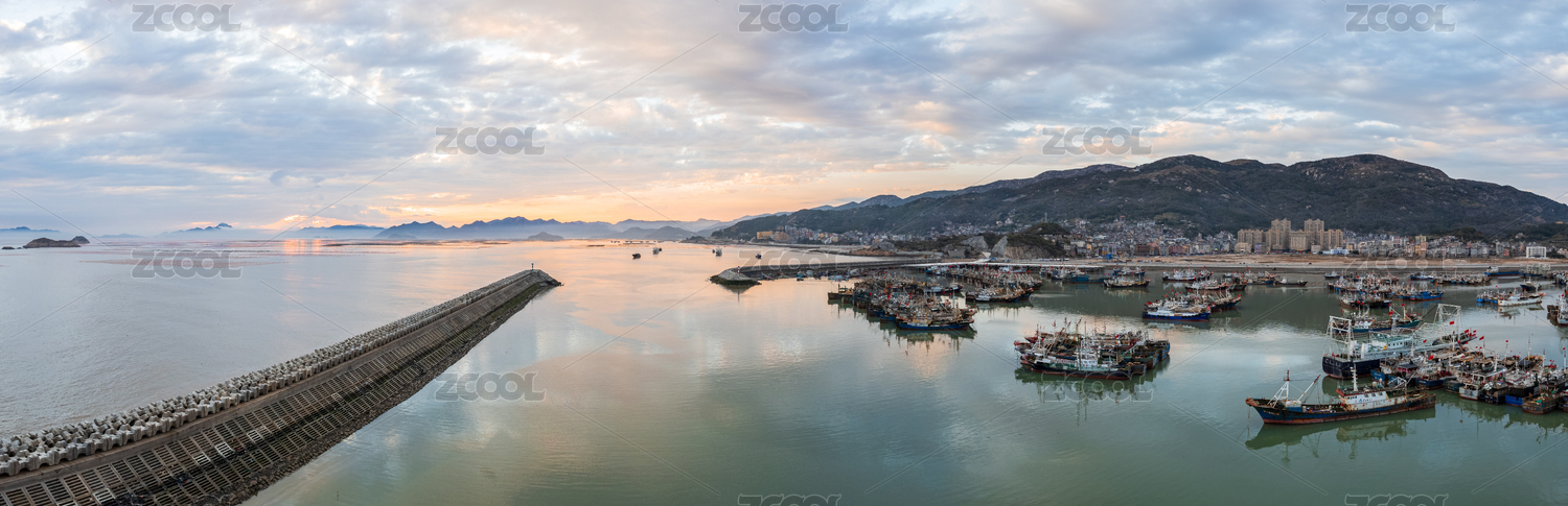 浙江宁波象山石浦渔港日出晨曦宽幅风景