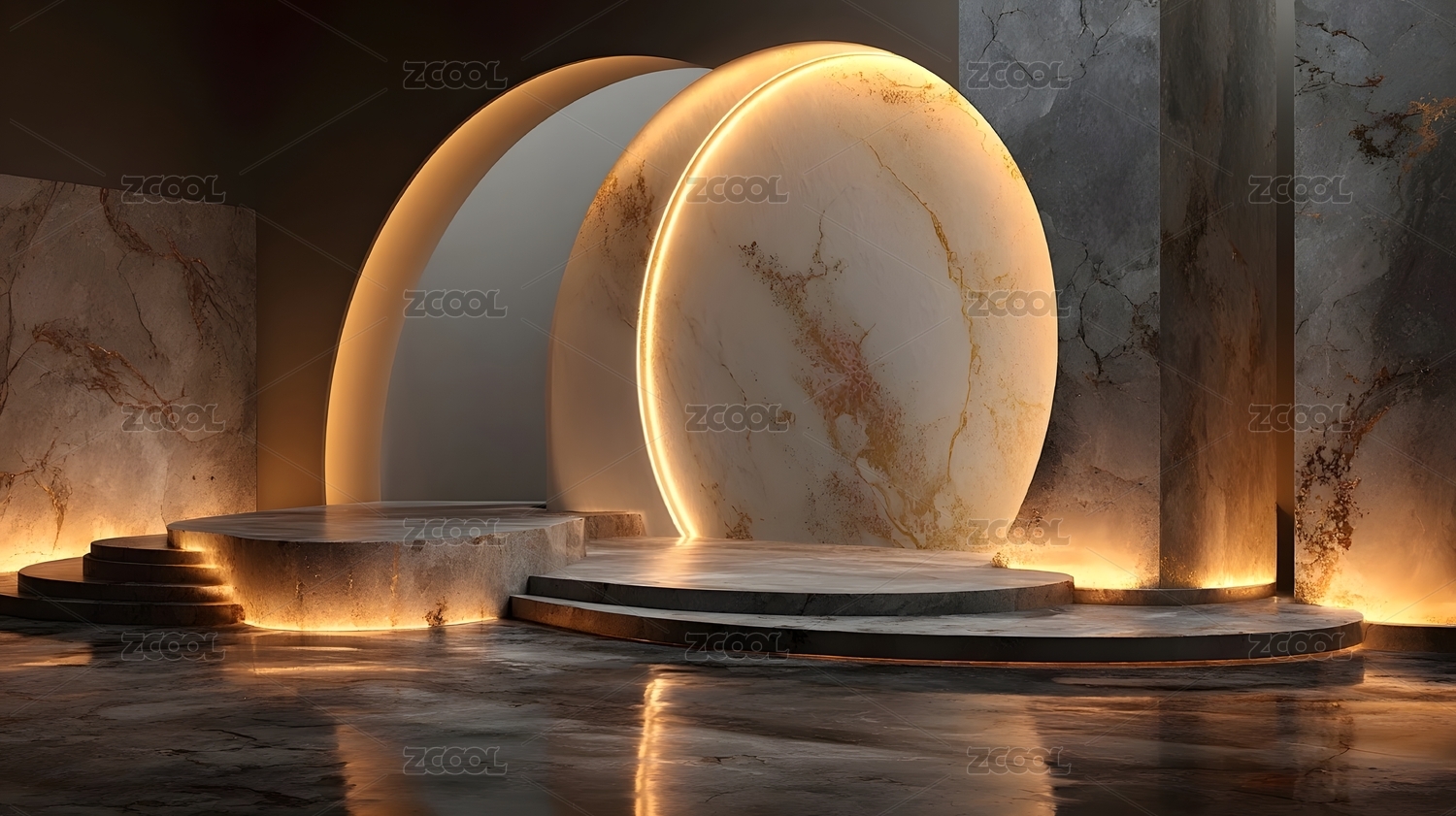 奢华大理石展台,金色光环环绕,