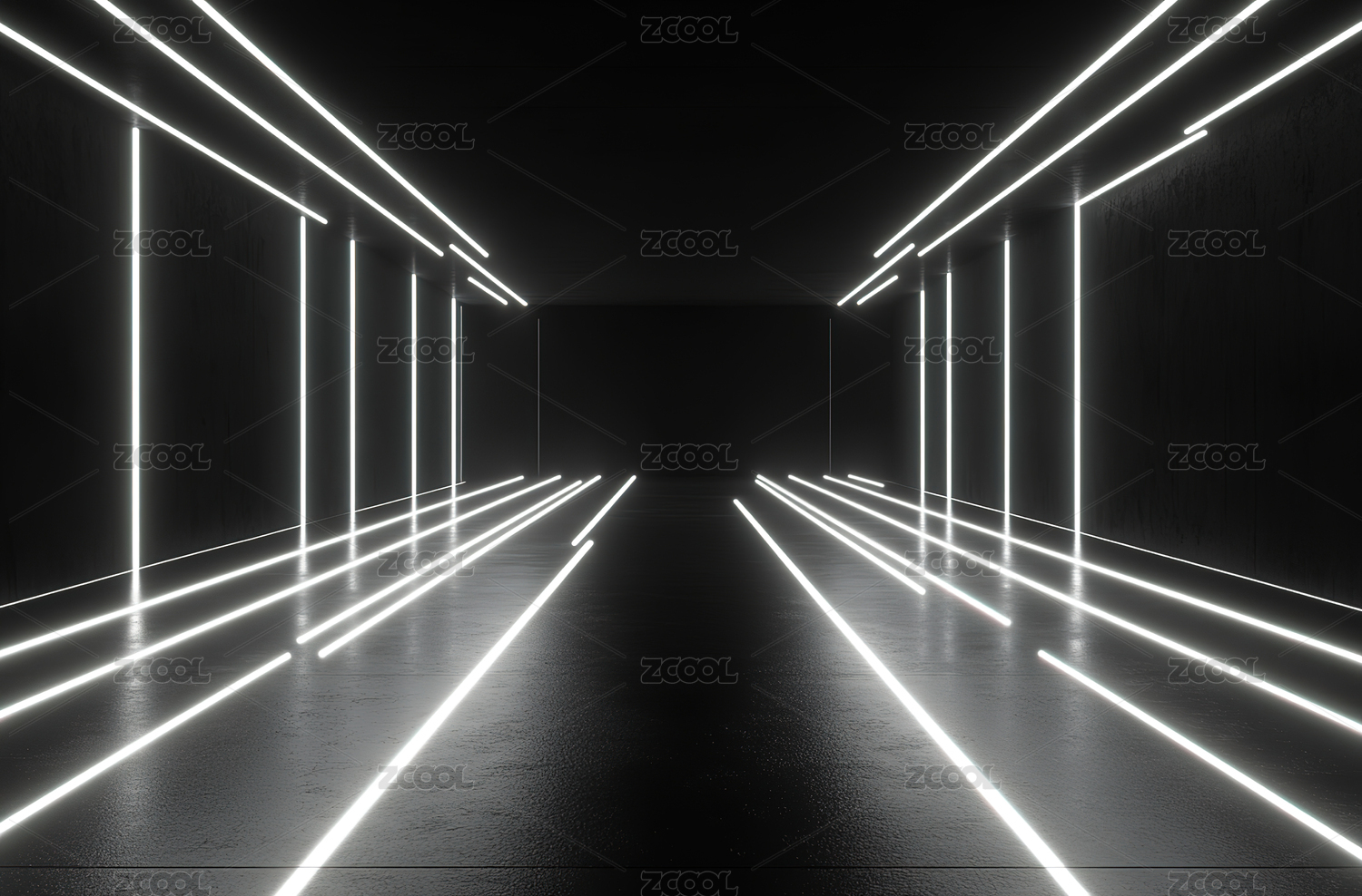 黑暗走廊光影线条3D空间