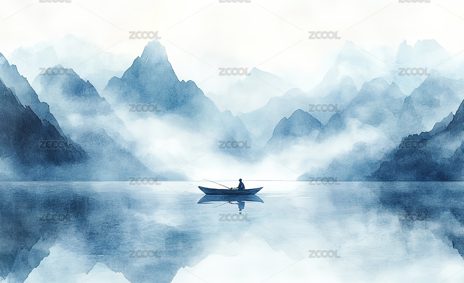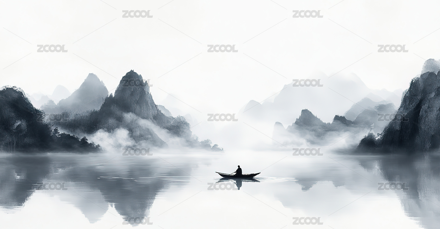 水墨画风格山水渔夫图