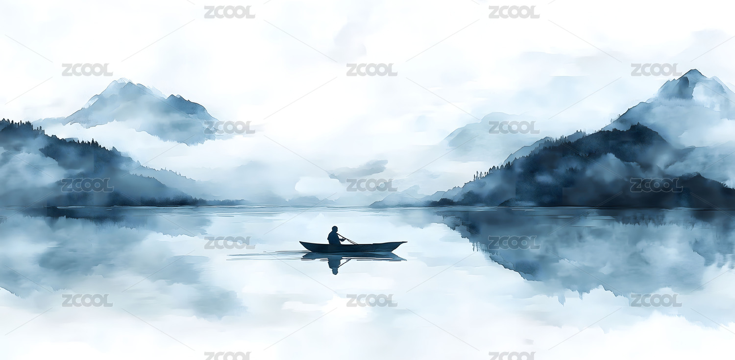 水墨写意山间泛舟