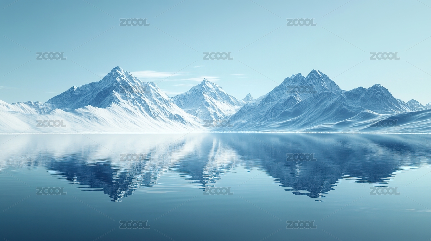 无人,自然,高山,旅行,湖,天空,自然美,雪,AI数字艺术,云