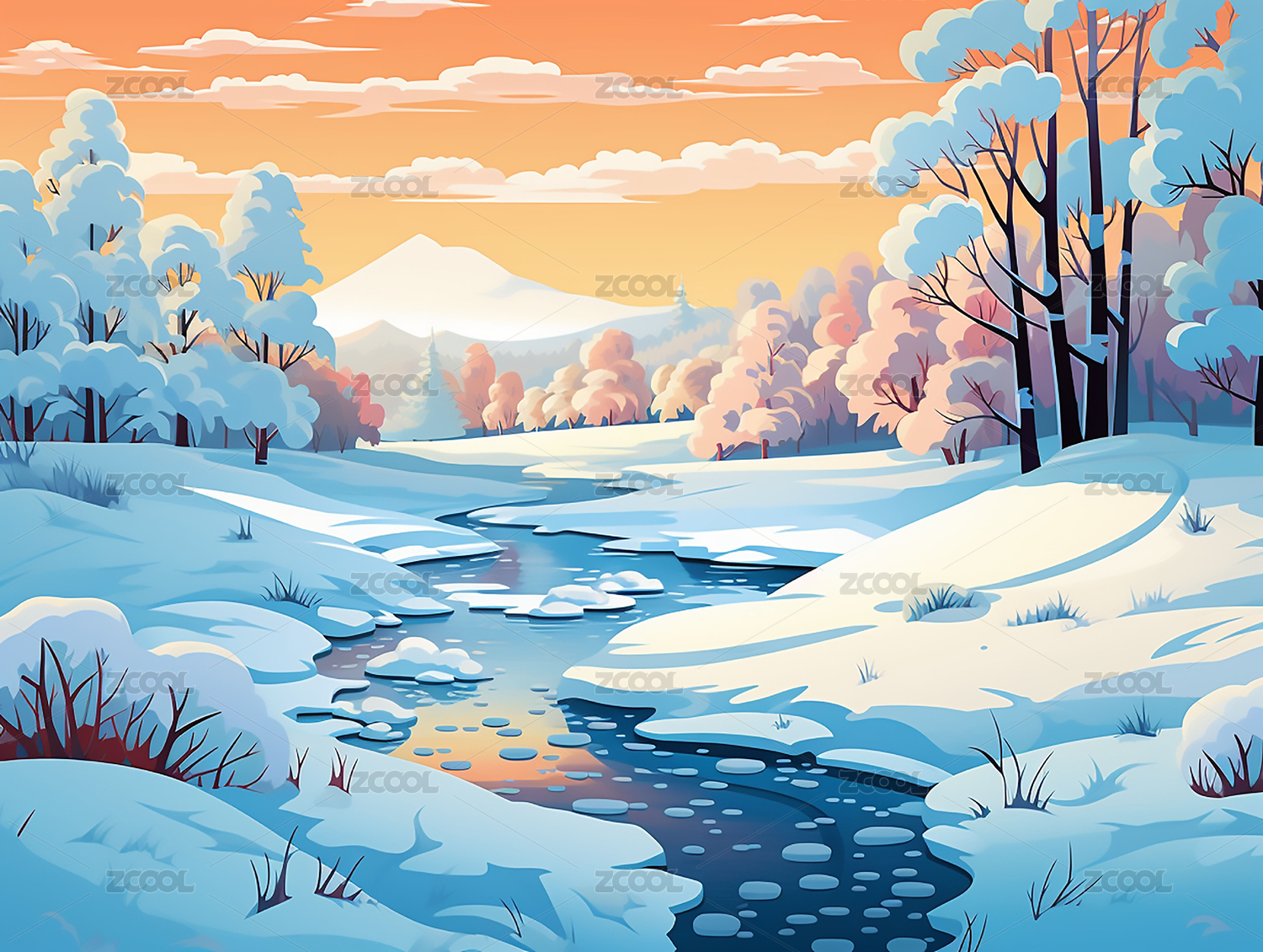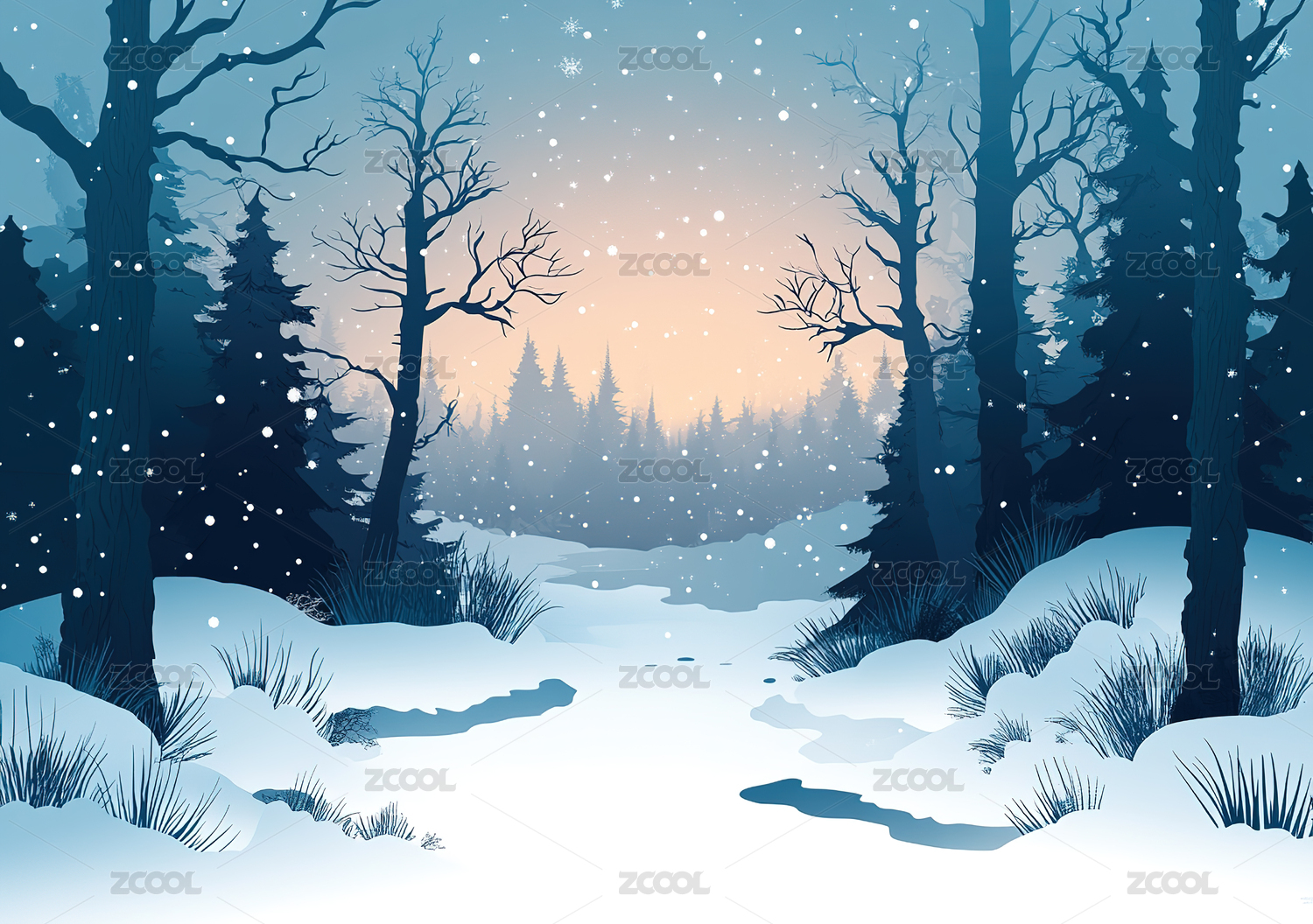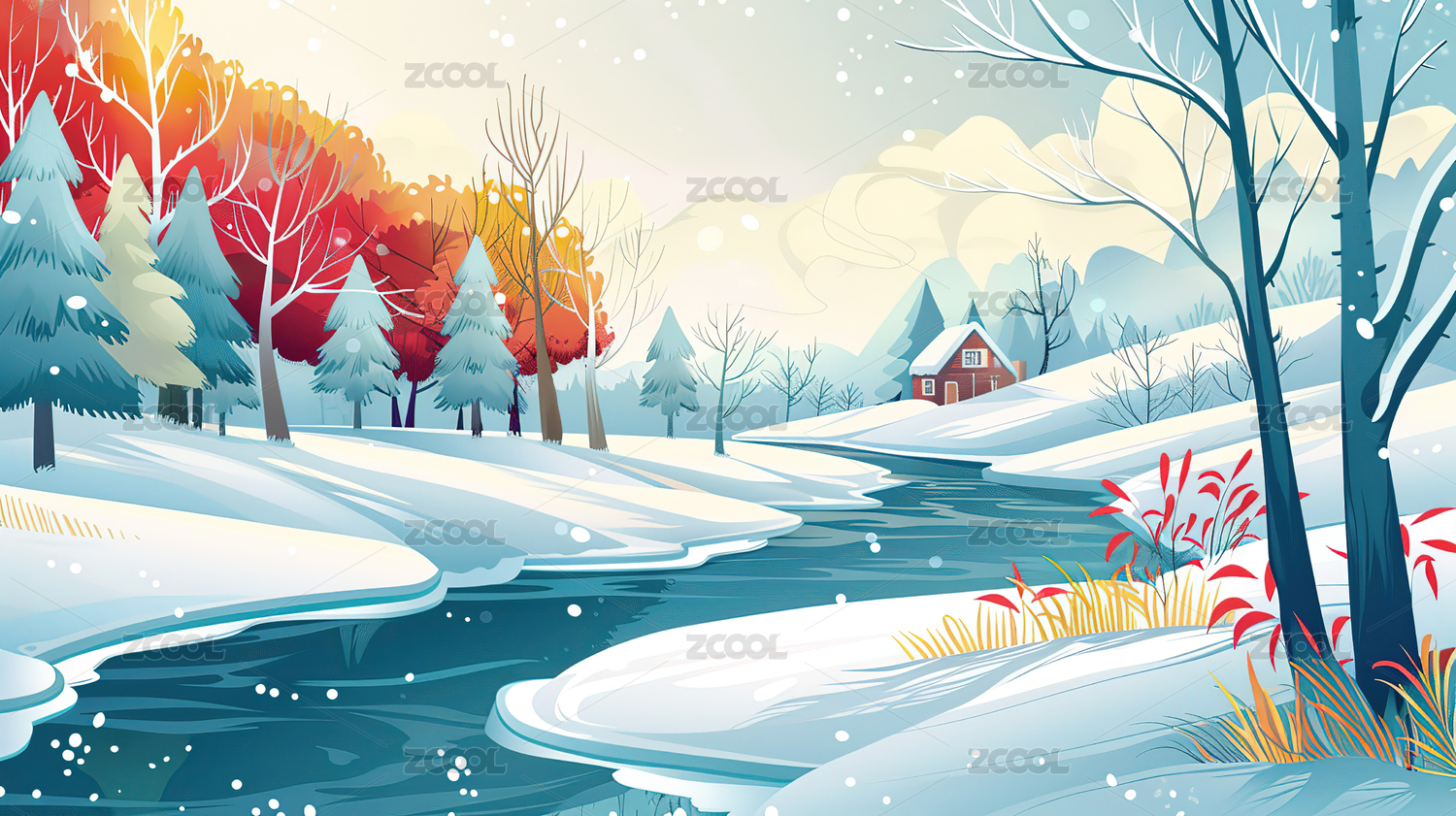 卡通圣诞冬季快乐场景与雪中小镇儿童插图
