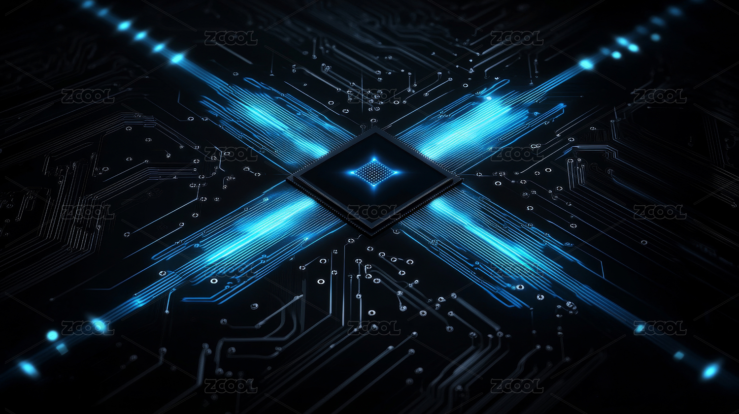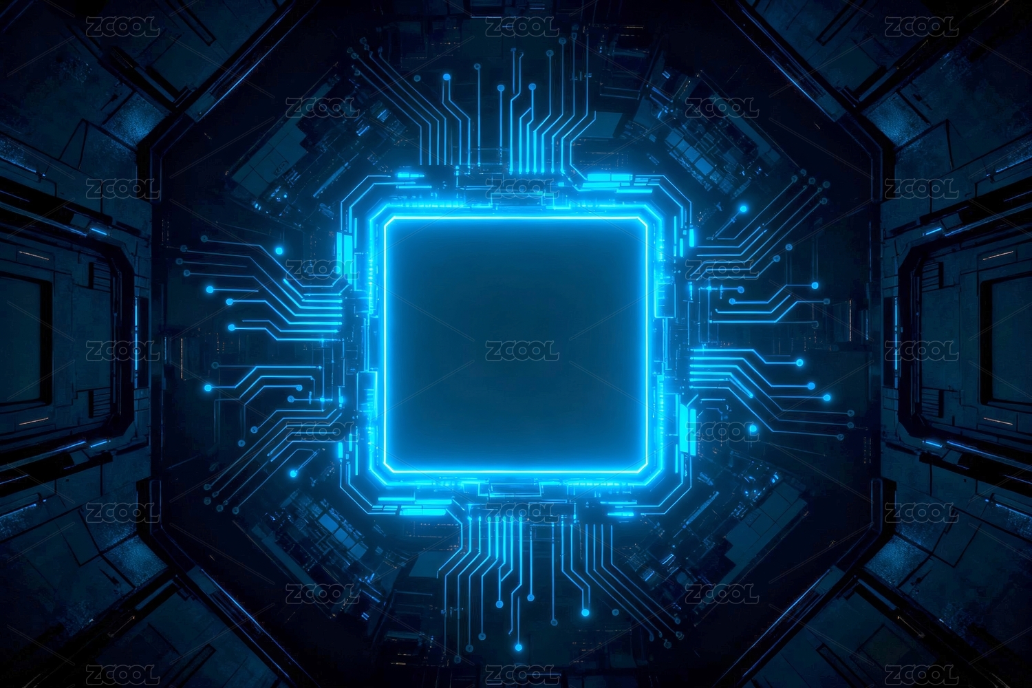 蓝色电路板核心发光图案