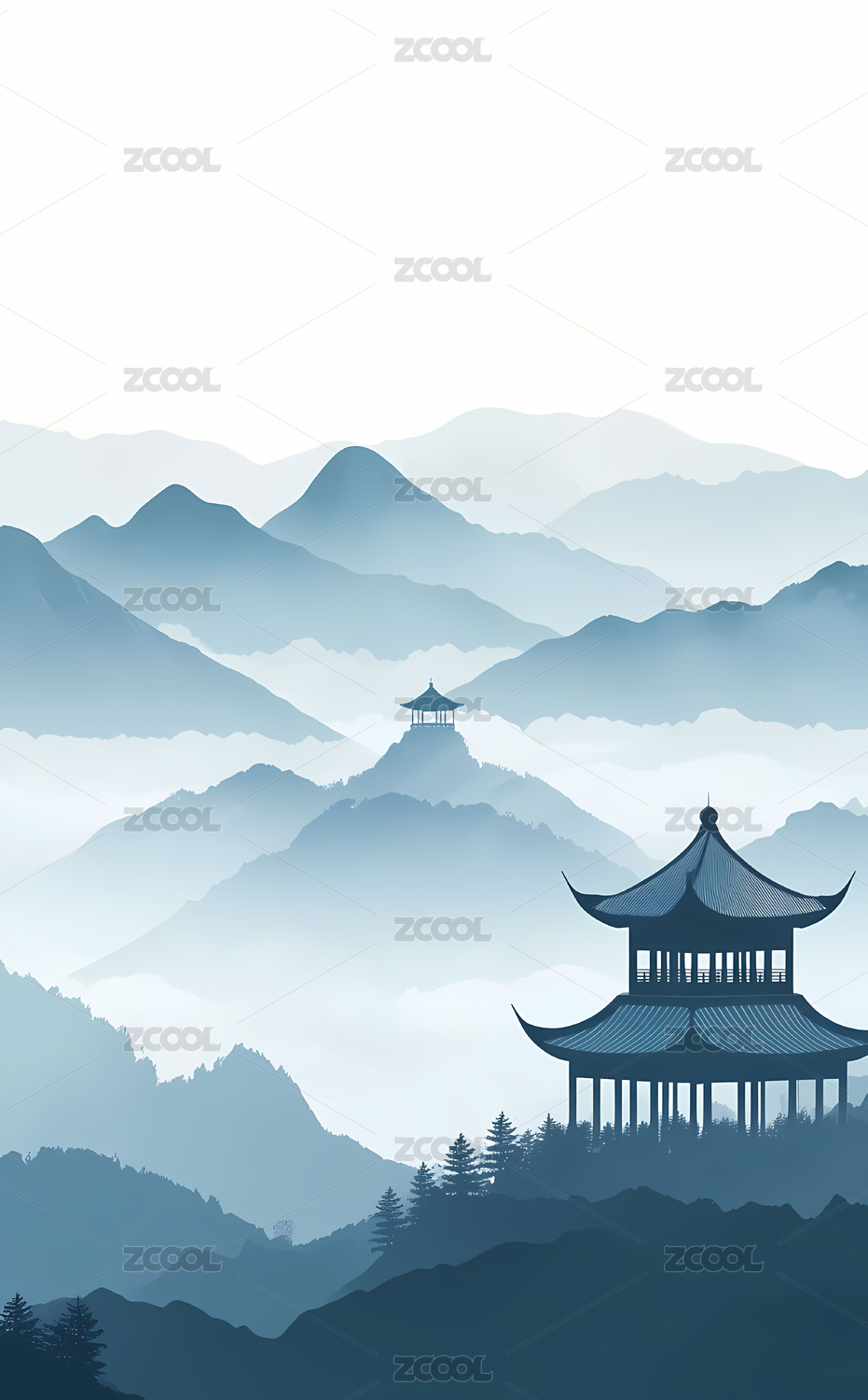 蓝色, 宁静, 设计, 意境,水墨画, 中国画, 艺术, 绘画, 美术, 简约