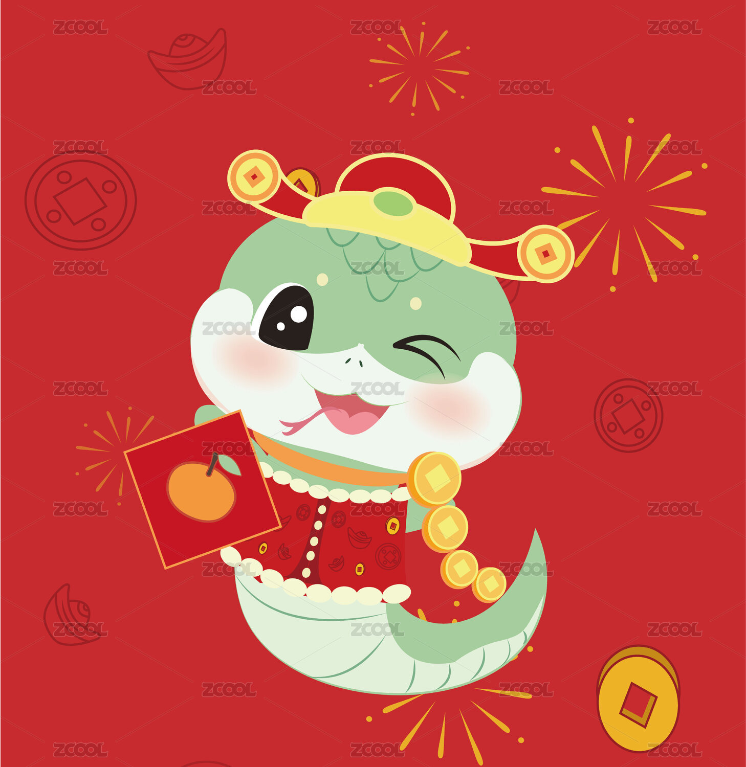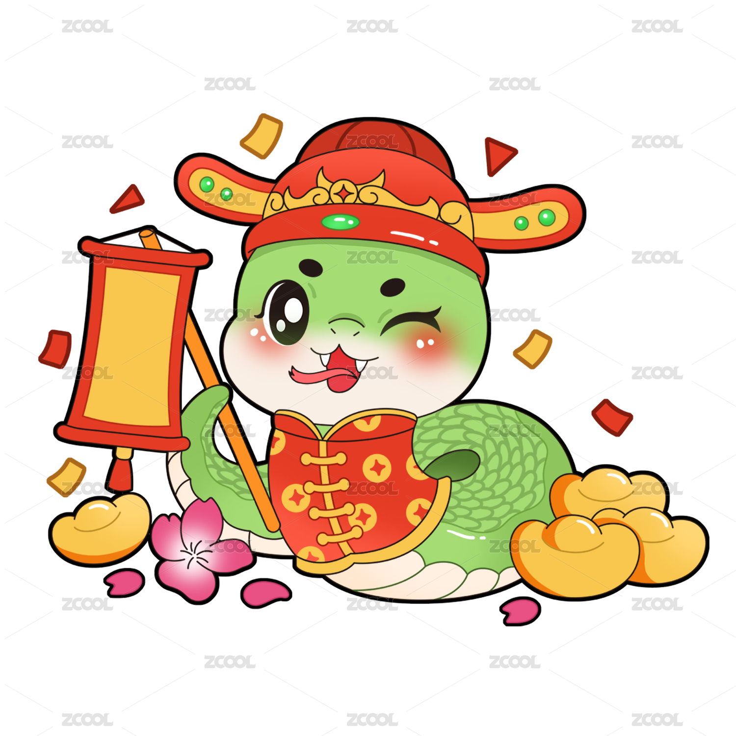 2025新年蛇年春节生肖可爱财神小蛇