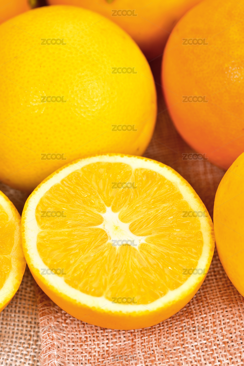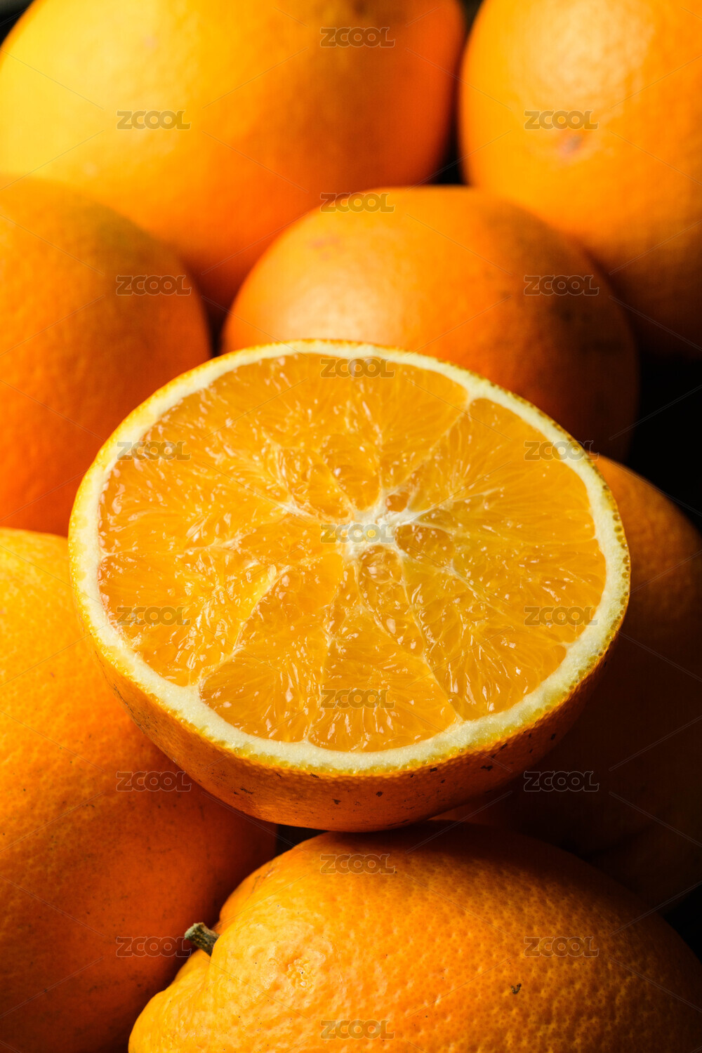 新鲜多汁的橙子横切面特写